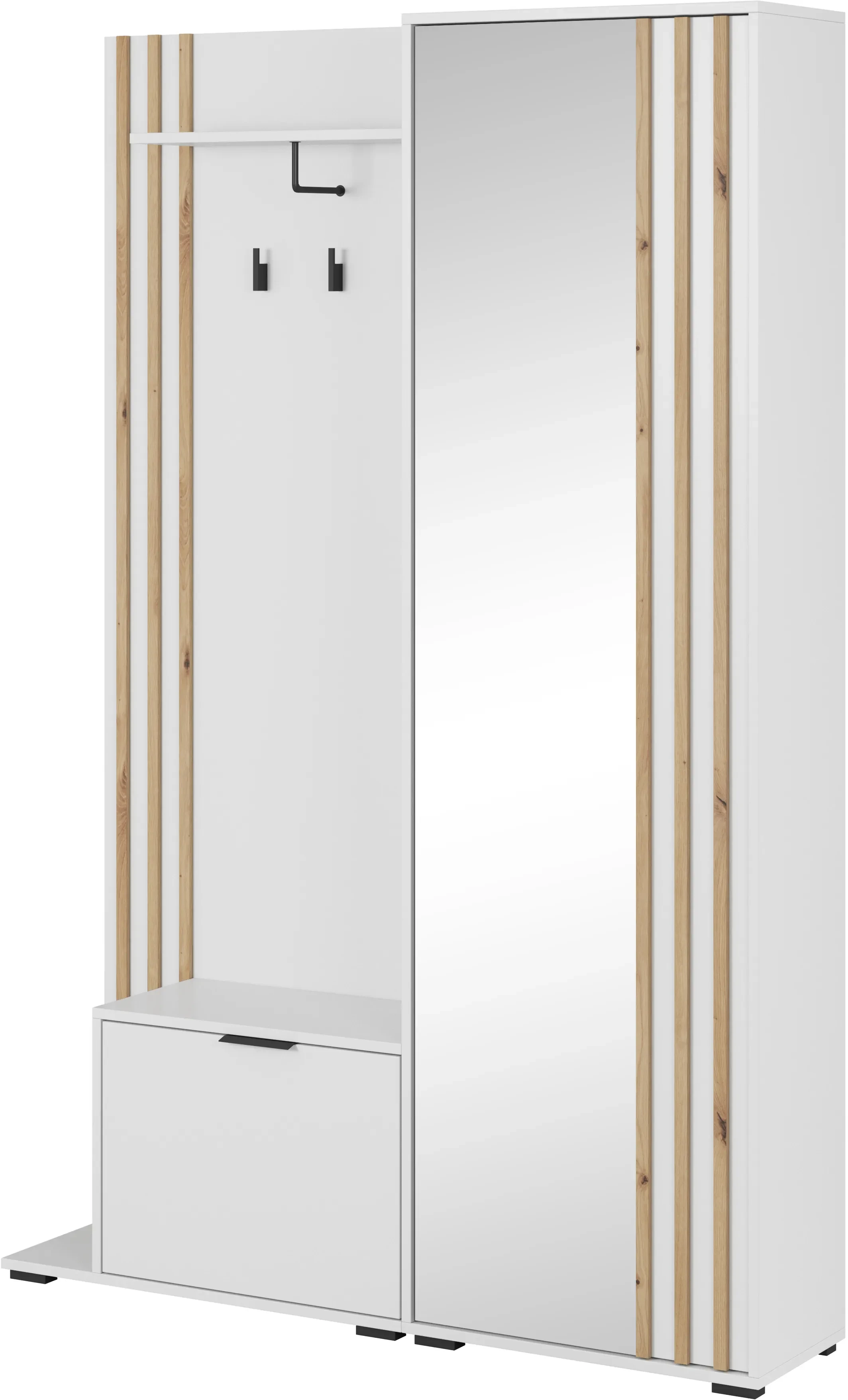 Garderoba Nelly z lustrem 131x192x40 cm biała lamela dąb artisan