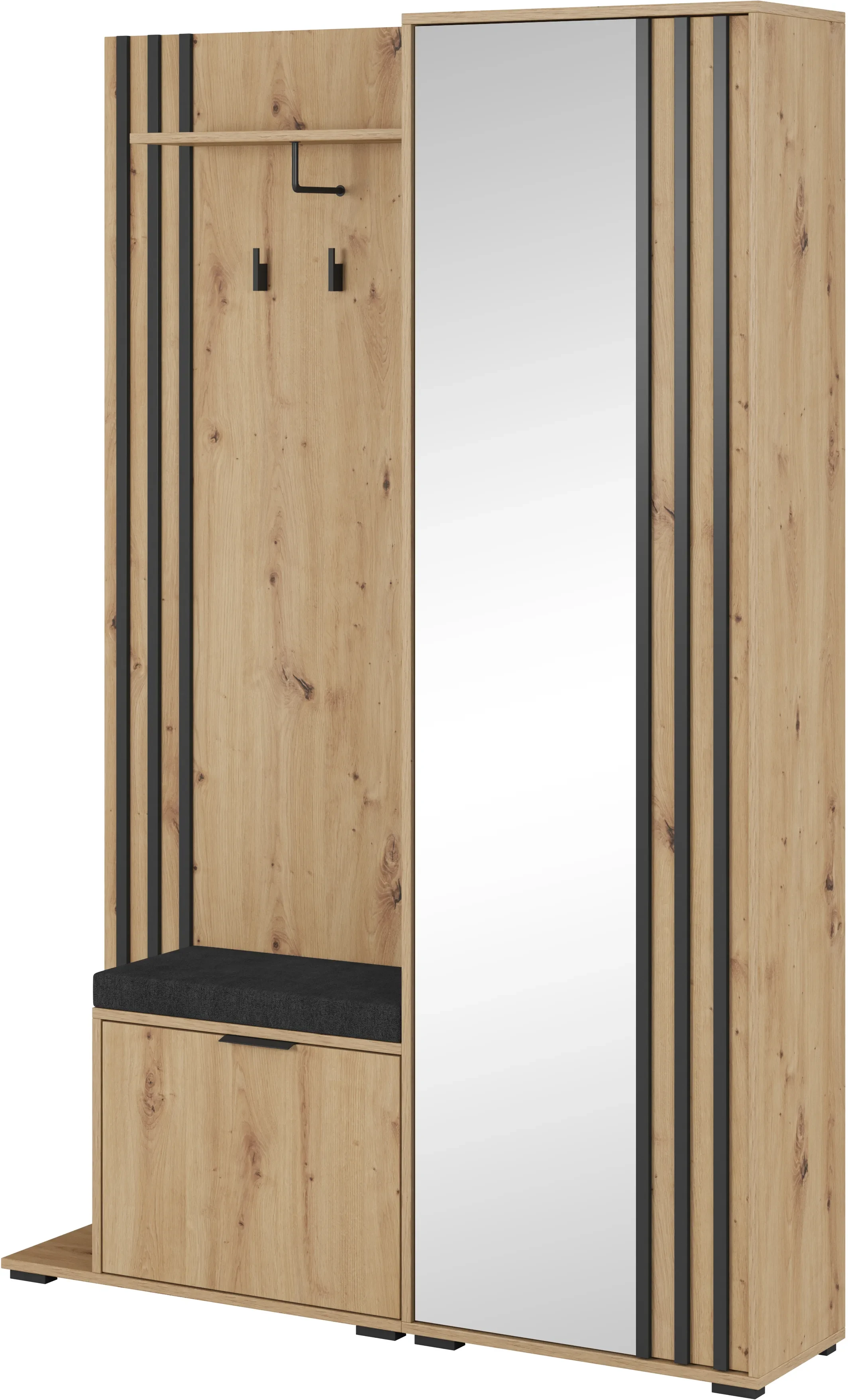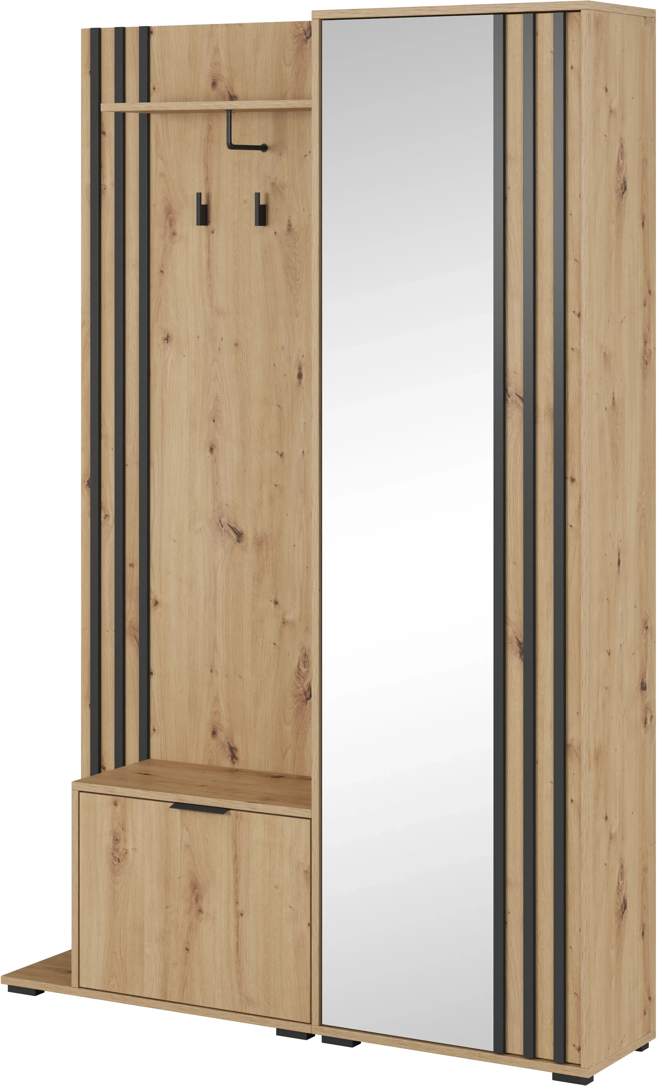 Garderoba Nelly z lustrem 131x192x40 cm dąb artisan lamela czarna