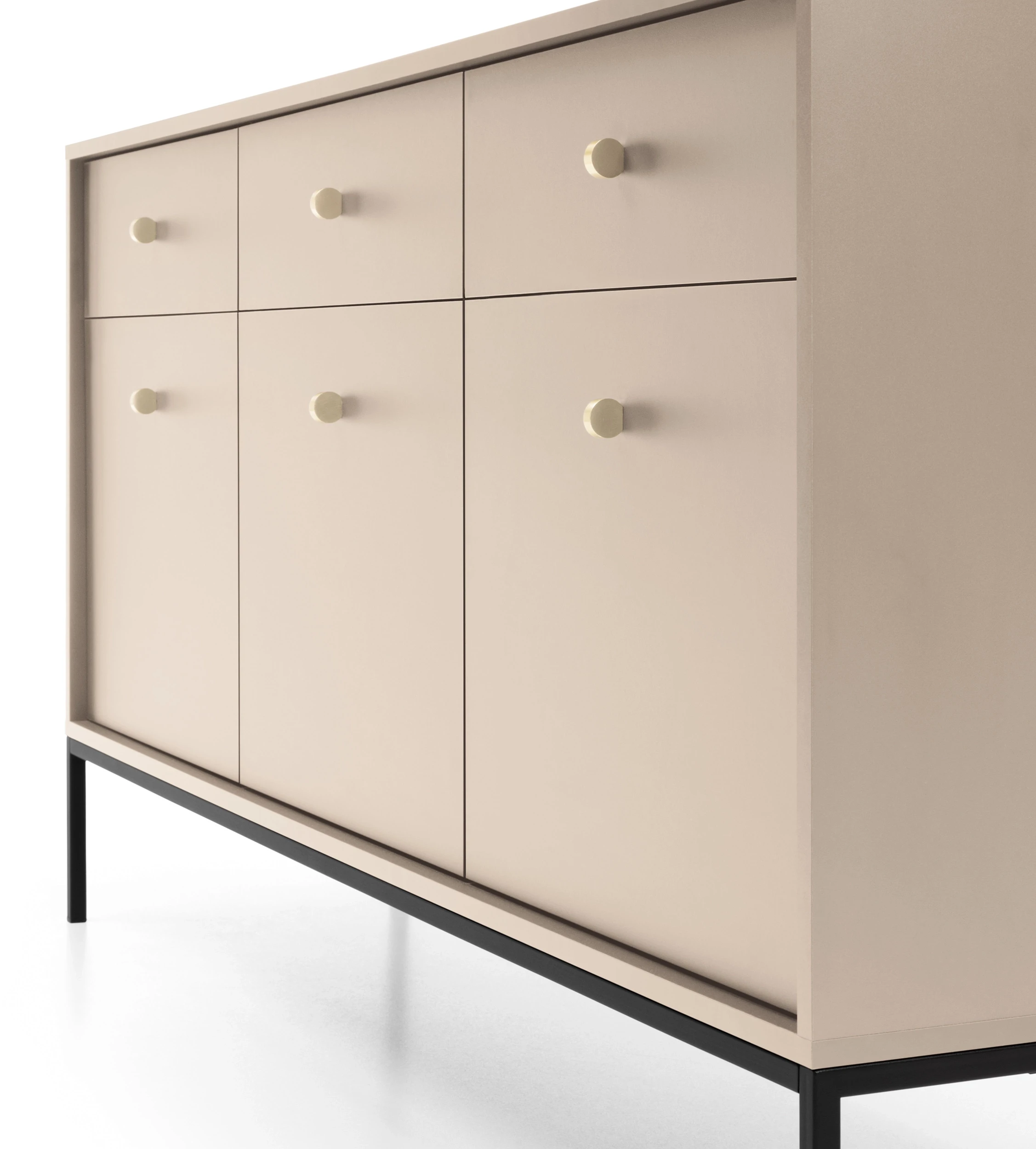 Mono to bardzo pojemna i nowoczesna komoda. Mebel został wyposażony w pojemne półki i szuflady, dzięki czemu stanowi idealne miejsce do przechowywania ubrań oraz pozostałych elementów garderoby, jak czapki, szale itp. Komoda sprawdzi się zarówno w salonie, sypialni, jak też pokoju dziecięcym, czy młodzieżowym. Nowoczesny, minimalistyczny design połączony z wyrazistym kolorem beżowym sprawia, że komoda Mono prezentuje się niezwykle stylowo i nowocześnie. Mebel został zaprojektowany i wykonany w Polsce co jest gwarancją jakości - Wspieraj