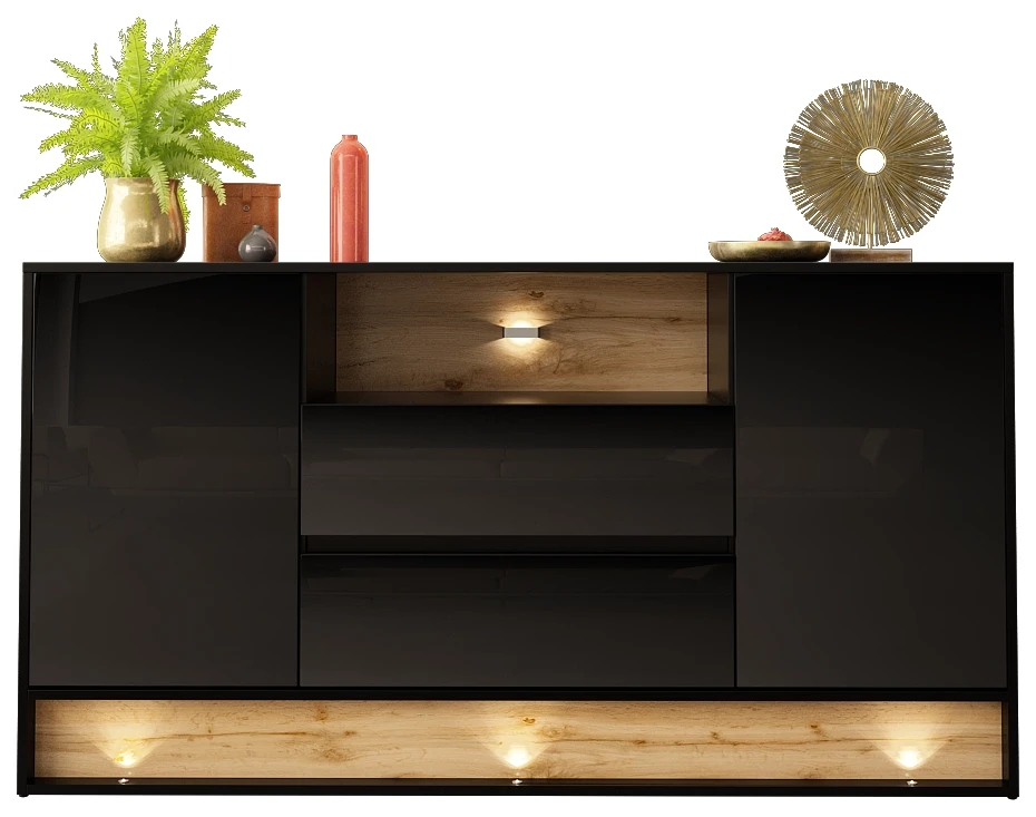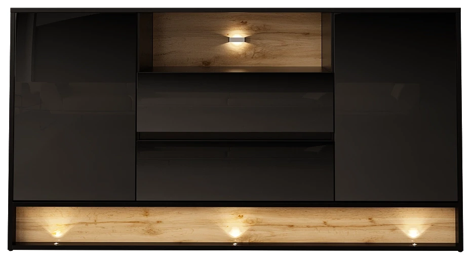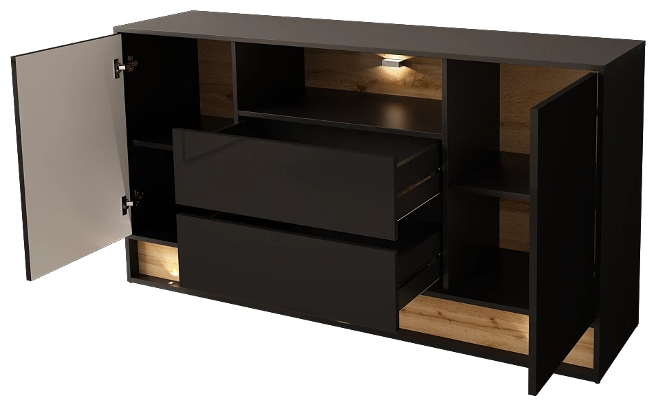 Komoda VISION 02 160 cm z LED czarny/wotan mat/połysk