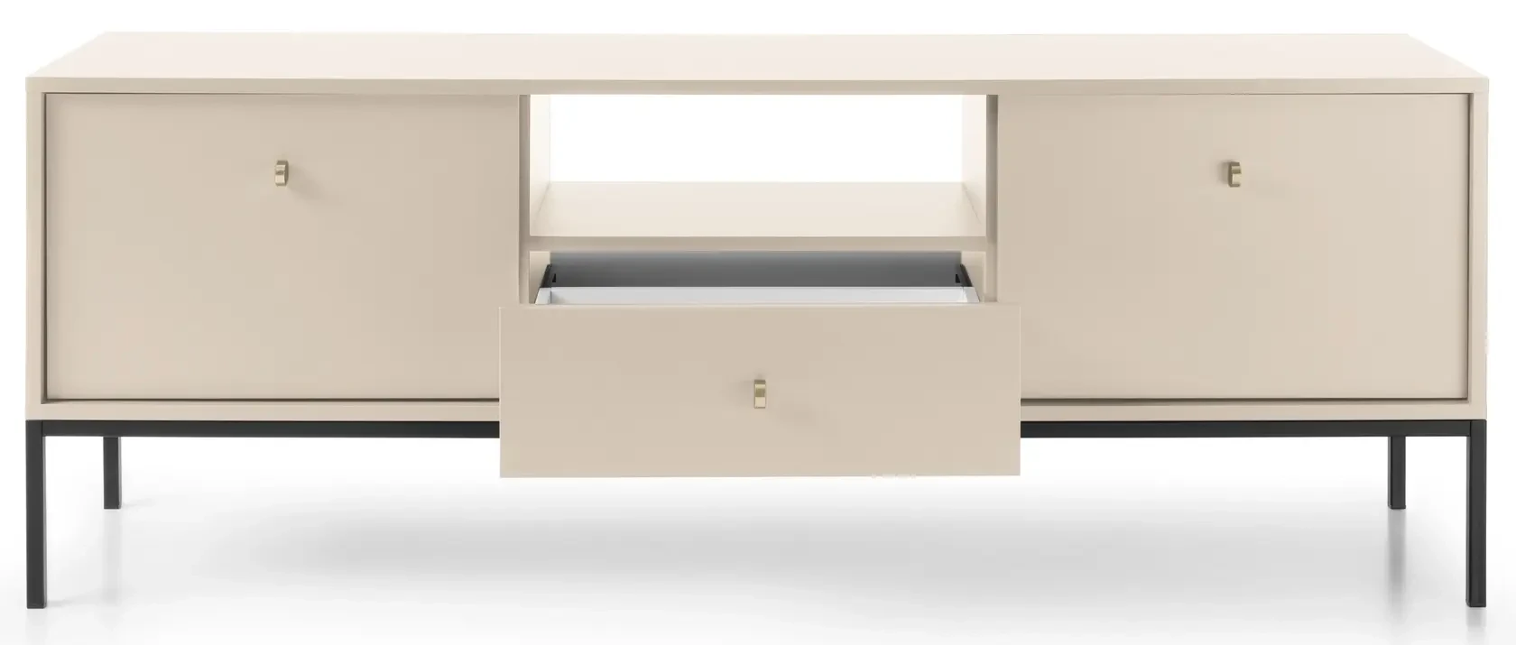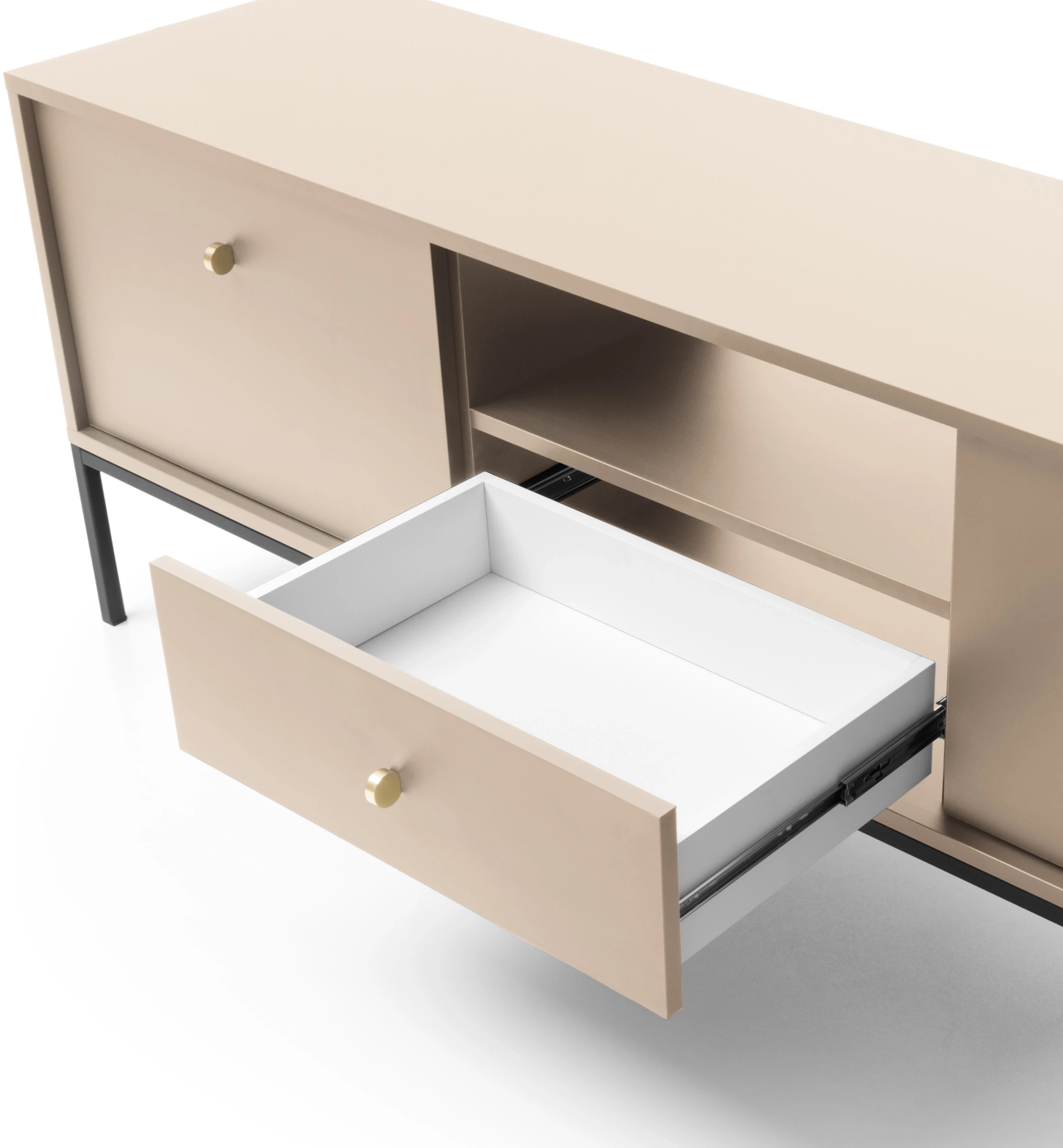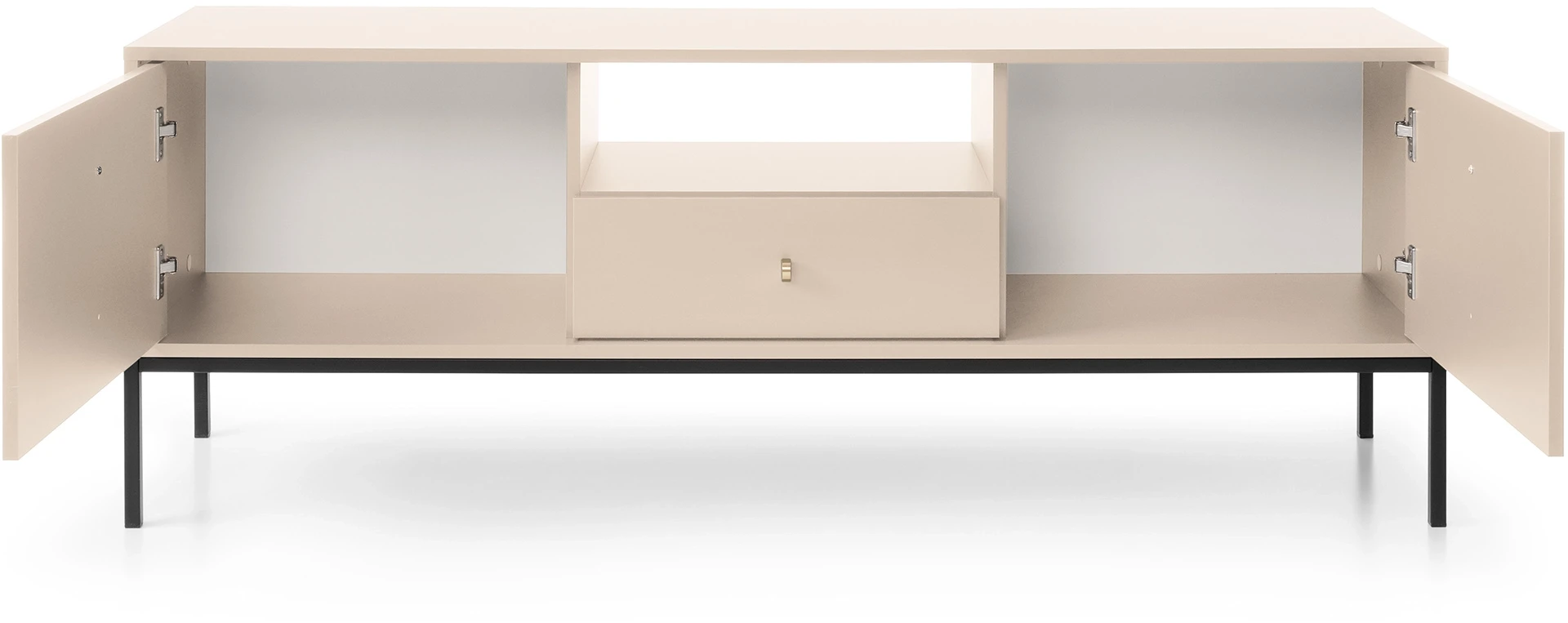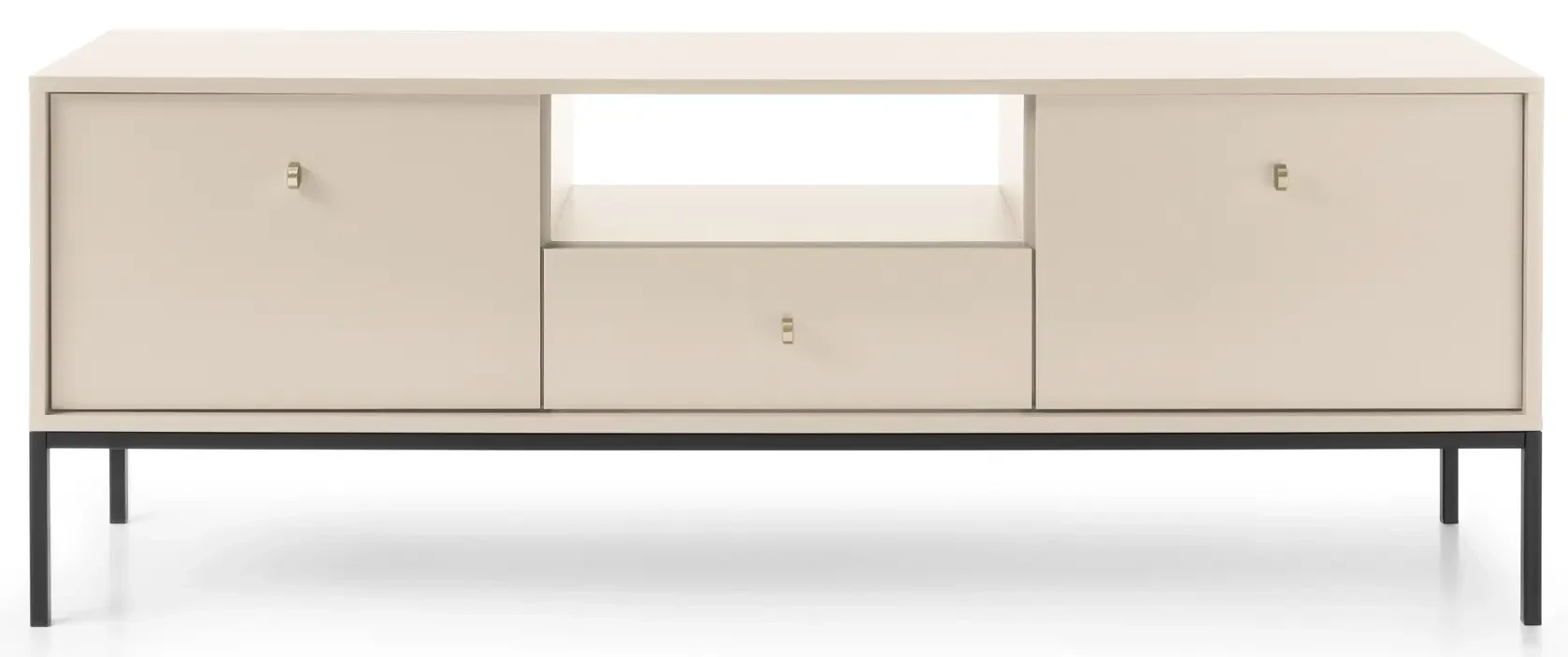 Szafka RTV Mono to funkcjonalny mebel utrzymany w nowoczesnym stylu. Szafka RTV jest jednym z elementów całej serii mebli Mono, która dostępna jest w naszej ofercie. Niewątpliwym atutem szafki są dwie duże pojemne szafki oraz szuflada, które stanowią doskonałe miejsce do przechowywania i pomogą w dobrej organizacji miejsca w salonie. Nowoczesny, minimalistyczny design połączony z wyrazistym beżowym kolorem sprawia, że szafka RTV Mono prezentuje się niezwykle stylowo i nowocześnie. Mebel został zaprojektowany i wykonany w Polsce co jest gwarancją jakości - Wspieraj