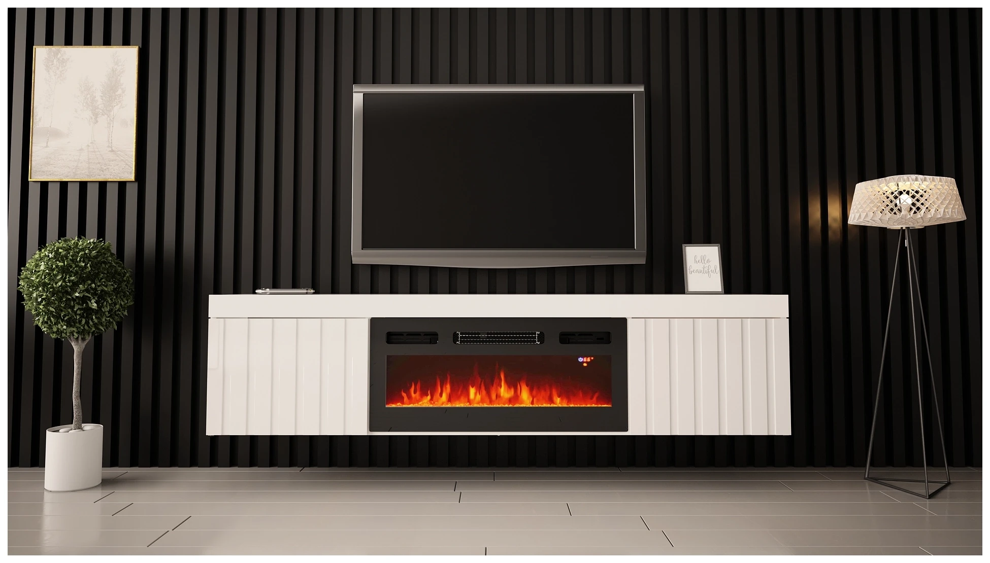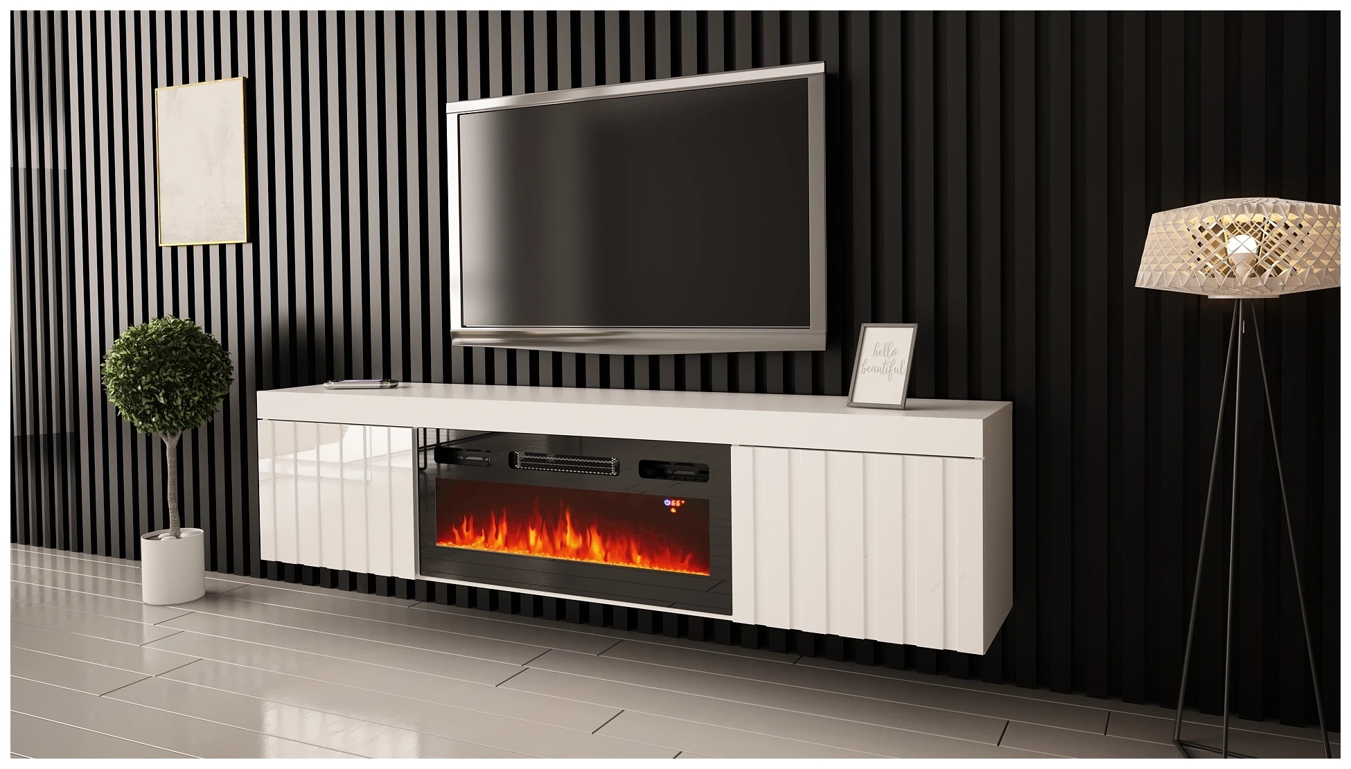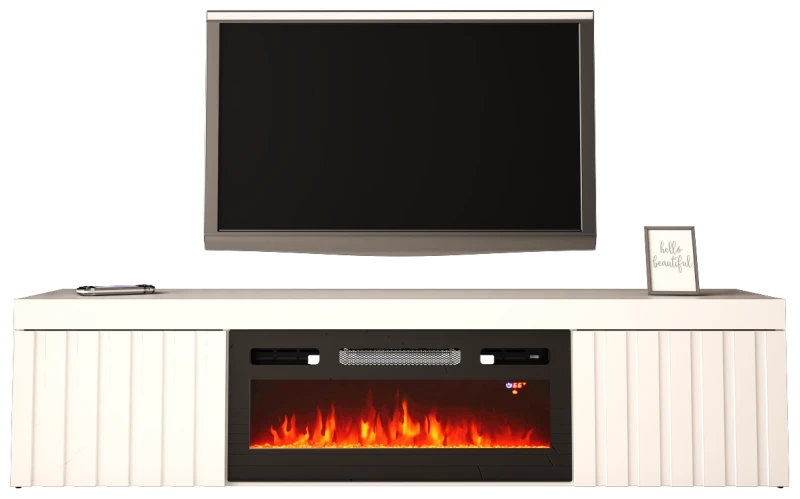 Szafka RTV wisząca/stojąca KNOXVILLE 02 RTV z kominkiem 180 cm biały mat