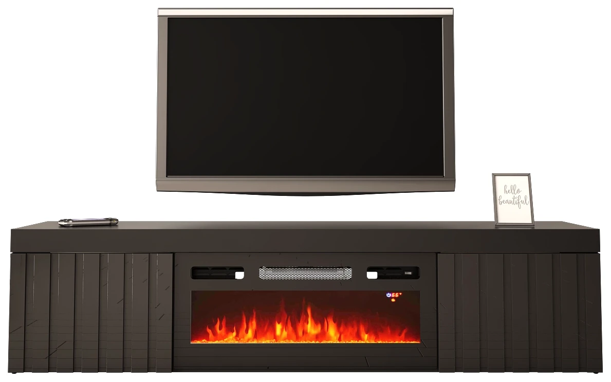 Szafka RTV wisząca/stojąca KNOXVILLE 02 RTV z kominkiem 180 cm czarny mat