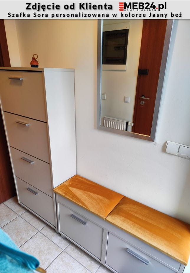 Szafka na buty Sora z siedziskiem srebrne uchwyty