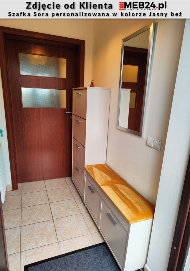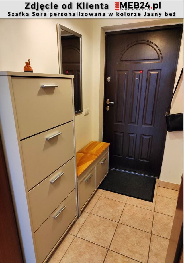 - praktyczna konstrukcja szafki - dwa przedzielone półką schowki mogą pomieścić łącznie do 8-9 par butów