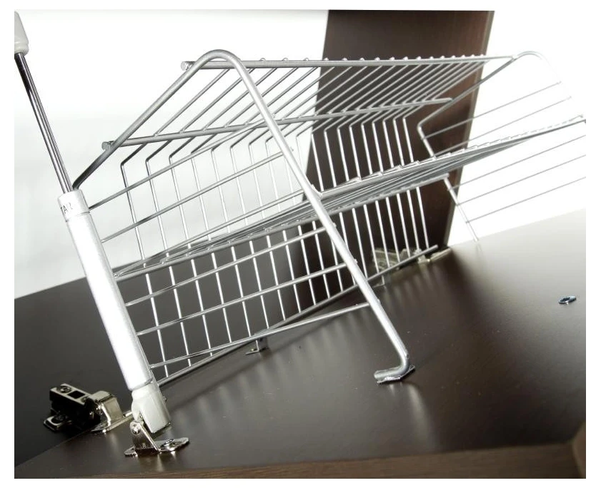Volana to prosta i jednocześnie elegancka szafka na buty na nóżkach. Wewnątrz szafki umieszczone są dwa szerokie metalowe, dwurzędowe kosze na obuwie. Fronty tej szafki na buty posiadają wygodne uchwyty typu relingi, które ułatwiają otwieranie i zamykanie szafki. Dodatkowo do produkcji wykorzystano metalowe zawiasy oraz podnośniki gazowe, które ułatwiają korzystanie z mebla.