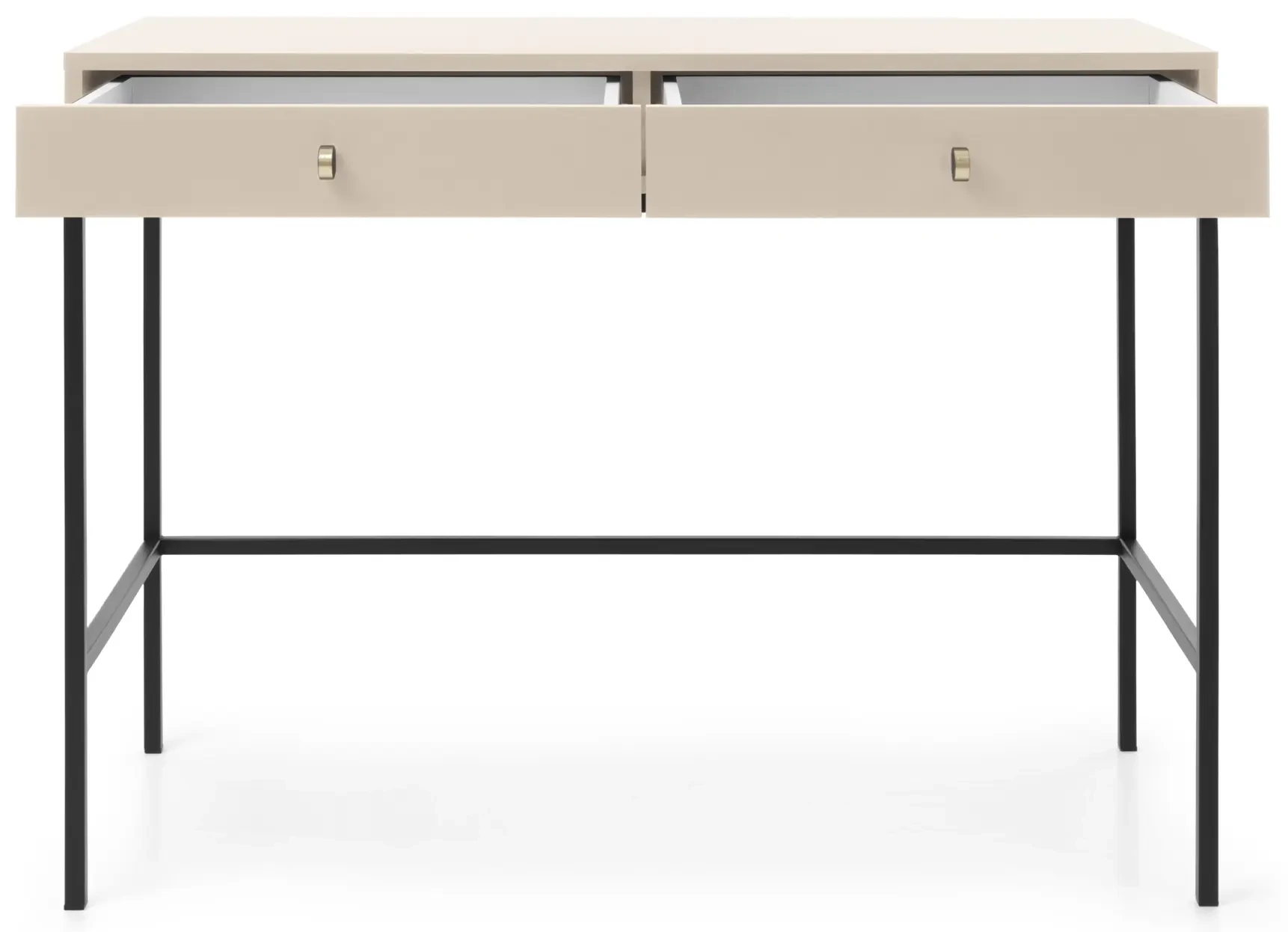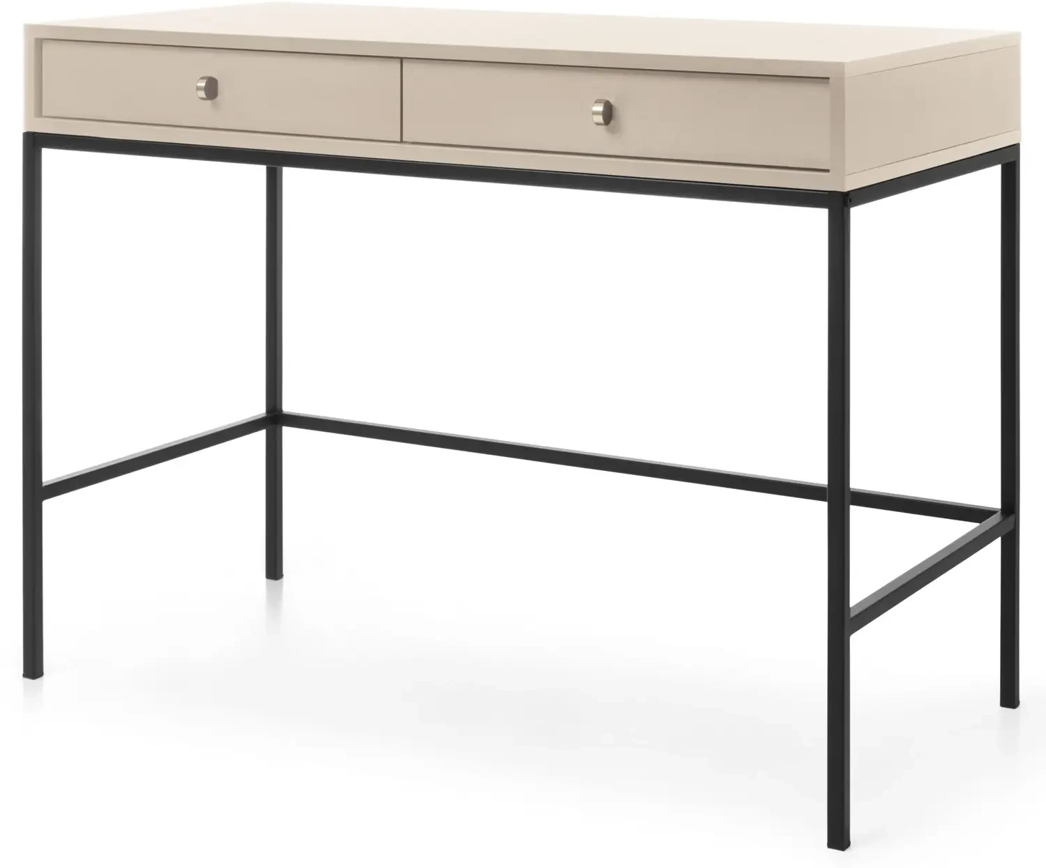 Toaletka Mono, to nowoczesna propozycja mebla do sypialni lub przedpokoju. Toaletka została wyposażona w dwie szuflady, które stanowią doskonałe miejsce do przechowywania kosmetyków, biżuterii lub innych drobiazgów. Nowoczesny, minimalistyczny design połączony z wyrazistym beżowym kolorem sprawia, że toaletka Mono prezentuje się niezwykle stylowo i nowocześnie. Mebel został zaprojektowany i wykonany w Polsce co jest gwarancją jakości - Wspieraj