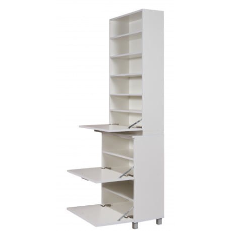 Salerno to praktyczny zestaw mebli do przedpokoju. Składa się z dwóch części - górnej z otwartymi półkami i dolnej z drzwiczkami. Komplet mebli idealnie sprawdzi się jako miejsce do przechowywania zarówno ubrań, jak również czapek, szalików lub innych podręcznych rzeczy. Wyposażenie przedpokoju w tego typu mebel zapewni dobre zagospodarowanie przestrzeni i pozwoli zaoszczędzić miejsce. Mebel najlepiej prezentuje się w jasnej kolorystyce, ale dostępny jest również w innych, ciemniejszych kolorach, dzięki czemu każdy może dopasować go według własnych preferencji. Szafka ta, jest na tyle uniwersalna, że sprawdzi się zarówno w klasycznym wnętrzu, ale również świetnie wpisze się w styl nowoczesny.