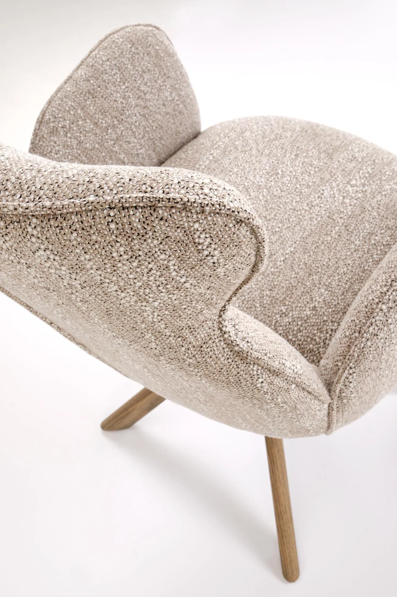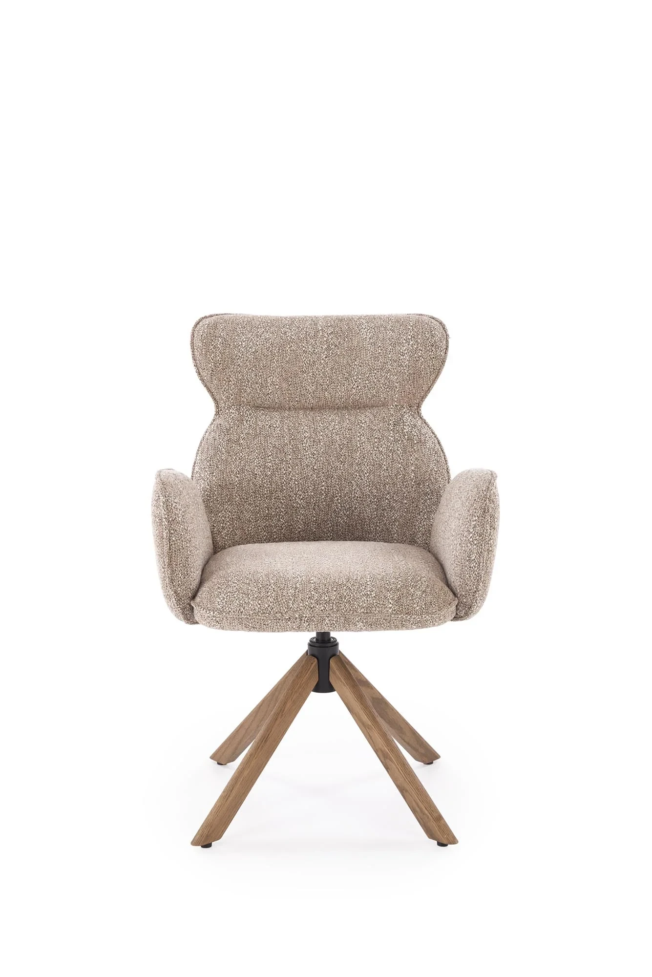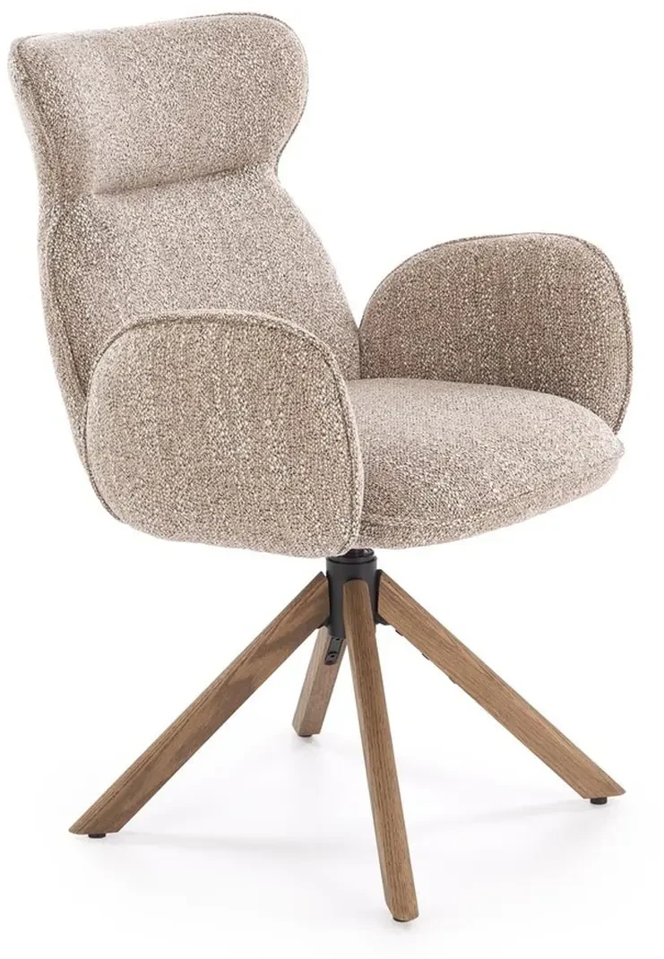 Specyfikacja techniczna Krzesło obrotowe K585 tapicerowane do jadalni ciemny beżowy/jasny orzech: