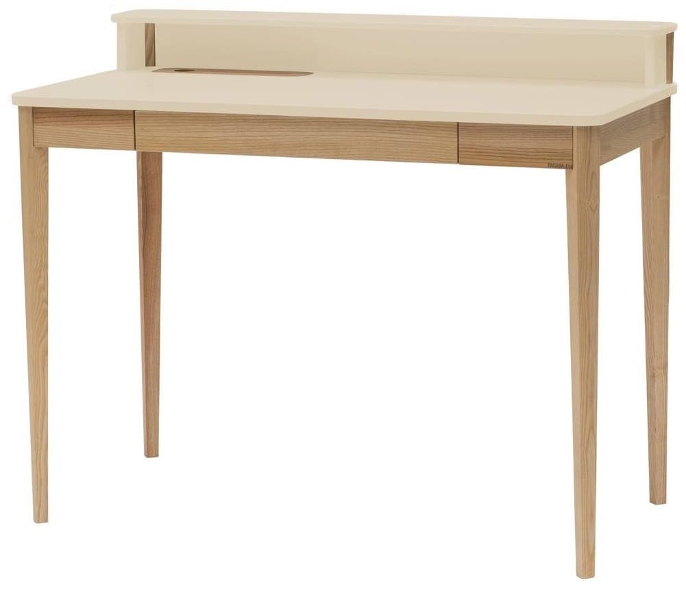 Biurko Ashme cechuje się lekkością i prostotą. Za pomocą funkcjonalnego schowka, który znajduje się w blacie ukryjesz wszystkie wystające kable. Duża powierzchnia części roboczej blatu, pozwala na swobodną pracę na komputerze. Natomiast szuflada, która jest zawsze pod ręką, gwarantuje zorganizowanie podręcznych akcesoriów. Precyzyjnie wyfrezowany element z drewna jesionowego dyskretnie zakryje nieestetyczne kable, a rowek w nodze biurka sprawi, że kabel będzie praktycznie niewidoczny. Dzięki zastosowaniu drewna jesionowego twoje mieszkanie / biuro dostanie uroku i ciepła, które podkreśli wybrany kolor. Nasze meble wykonane są z najwyższą starannością i dbałością o każdy szczegół. Nie malujemy spodów oferowanych mebli, ponieważ skupiamy się na estetyce i jakości powierzchni użytkowych, które mają bezpośredni wpływ na komfort użytkowania.