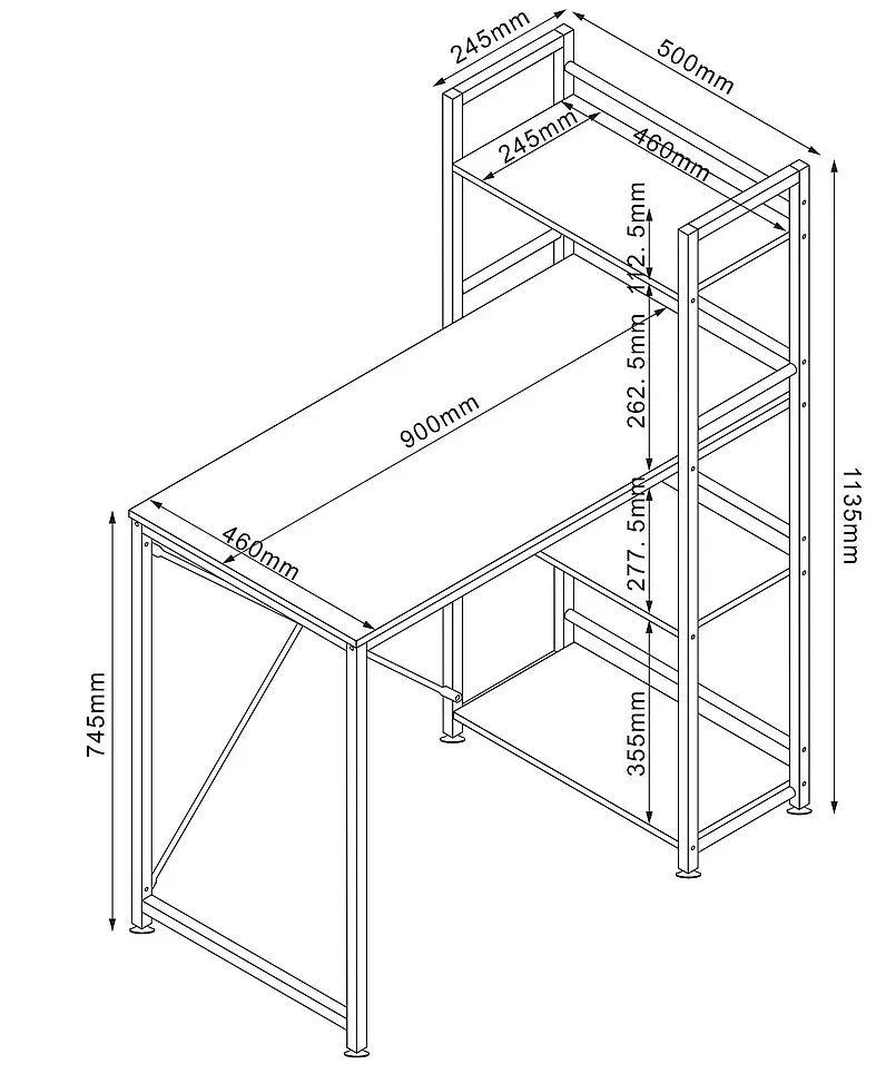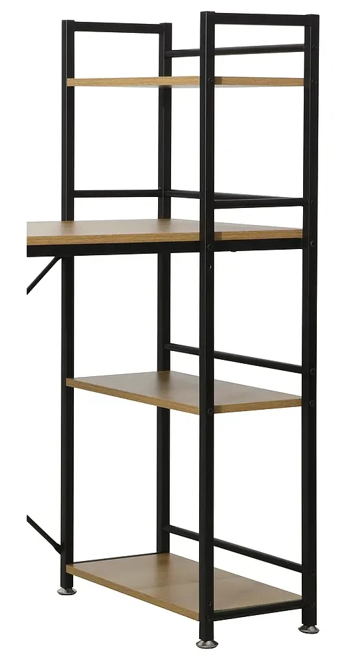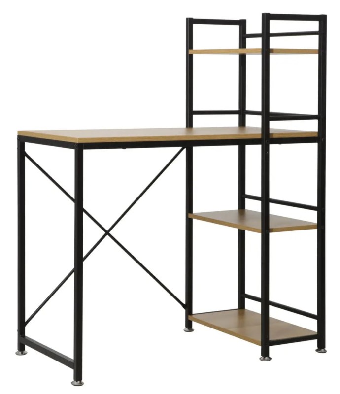 Biurko B-036 to oryginalny model, który idealnie wpisze się w stylistykę wnętrz nowoczesnych oraz tradycyjnych. Mebel wykonany został z wysokiej jakości płyty laminowanej w kolorze dębu, gwarantując stabilność i długotrwałe użytkowanie. Metalowy korpus biurka wybarwiony jest w czarnym, matowym kolorze. Mebel charakteryzuje się niezwykłą funkcjonalnością, gdyż posiada trzy półki, dzięki którym postawimy na nim wszystkie niezbędne książki, dokumenty oraz inne drobiazgi. Biurko B-036 doskonale sprawdzi się w przestrzeni biurowej lub pokoju młodzieżowym, tam gdzie stworzy idealne miejsce do pracy lub nauki.