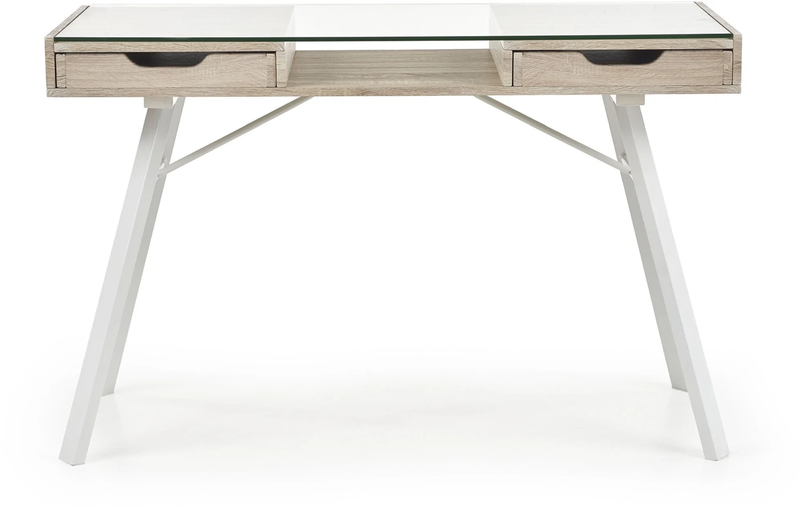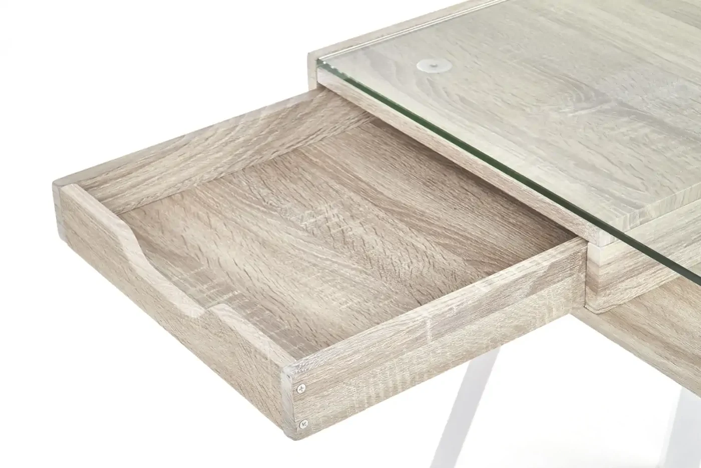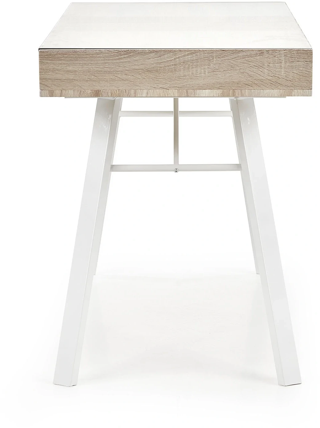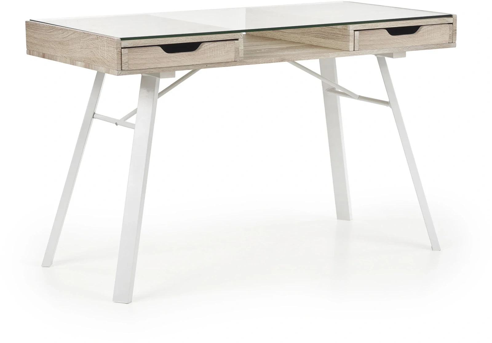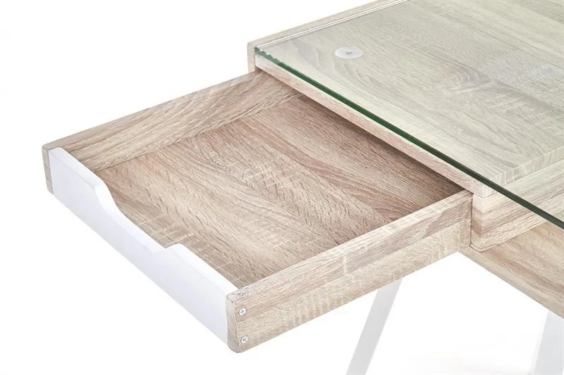 Biurko B33 z szufladami szkło biały/dąb sonoma