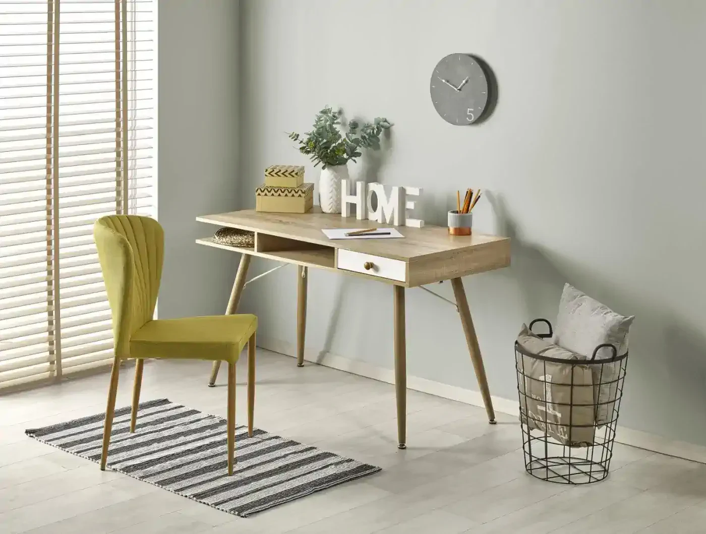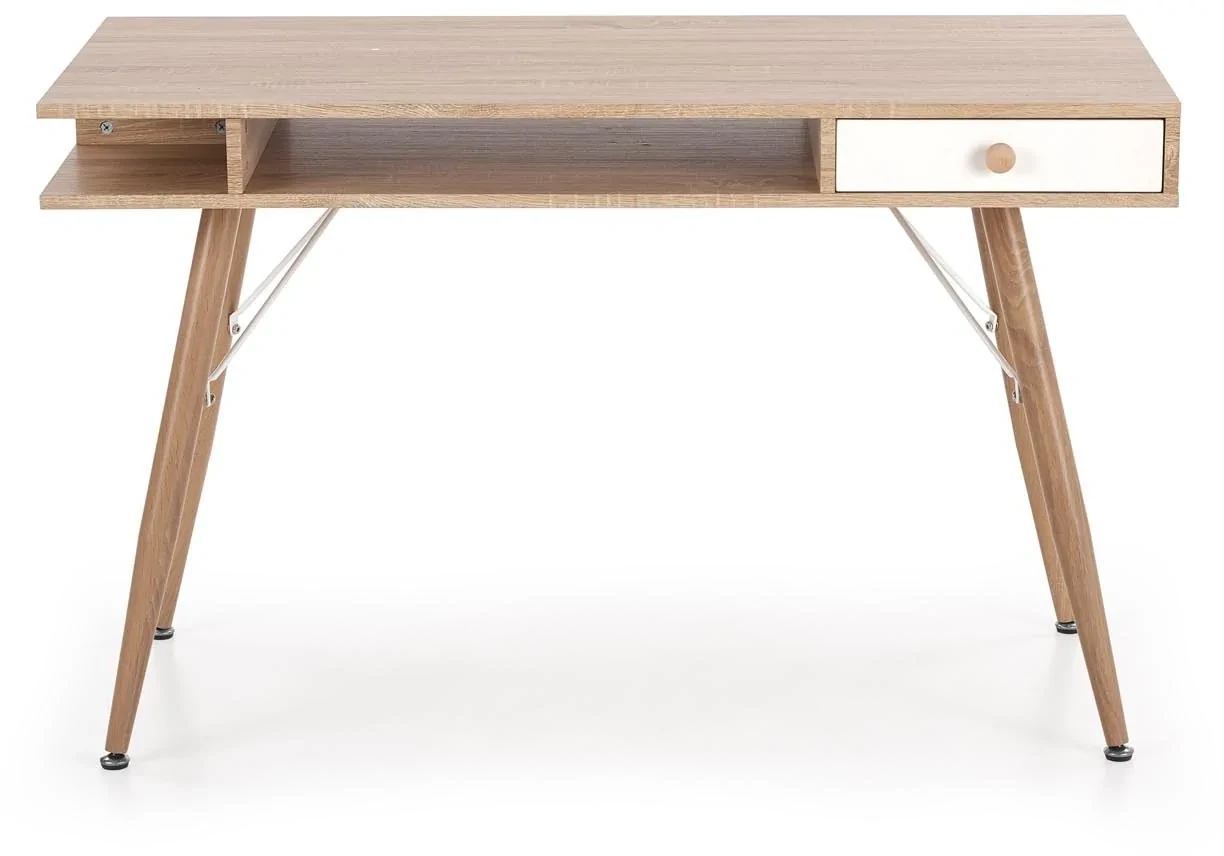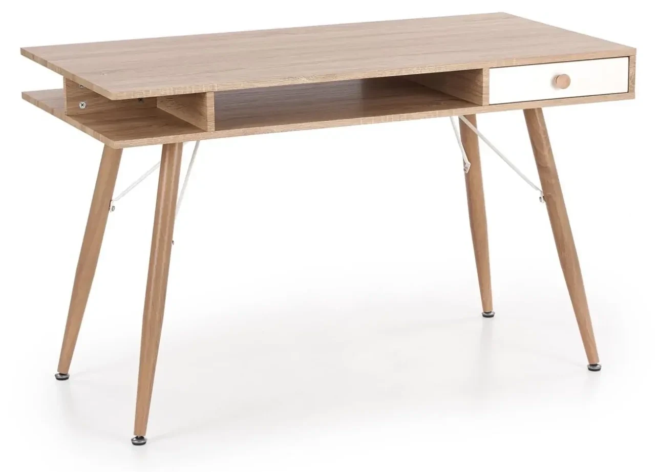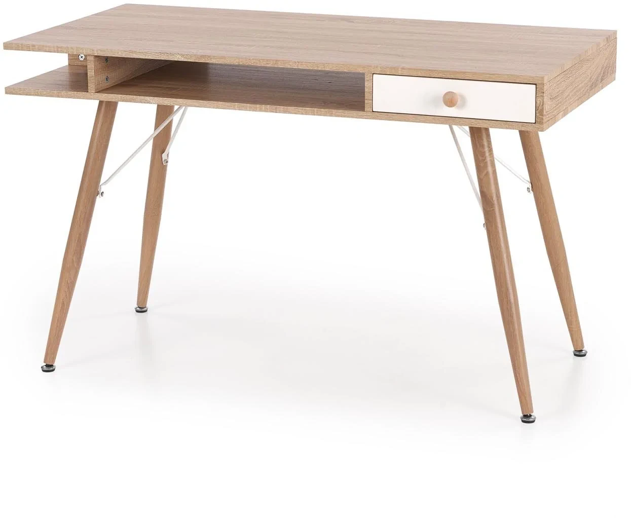 Biurko B33 to funkcjonalny i stylowy mebel, który idealnie wpisuje się w nowoczesne wnętrza. Zaprojektowane z myślą o wygodzie użytkowania, biurko B33 łączy elegancki design z praktycznymi rozwiązaniami, co czyni je idealnym wyborem zarówno do pracy, jak i nauki. Dzięki wymiarom 120x60x75 cm, biurko oferuje dużo miejsca na codzienne zadania, jednocześnie nie zajmując zbyt wiele przestrzeni w pomieszczeniu. Blat wykonany z laminowanego MDF w kolorze dąb sonoma oraz malowane proszkowo nogi ze stali, dodają wnętrzu nowoczesności i elegancji. Biurko B33 wyróżnia się również praktycznymi schowkami i szufladą, które pomagają w utrzymaniu porządku na stanowisku pracy. To idealny wybór dla osób ceniących estetykę i funkcjonalność w jednym. Biurko B33 to idealne rozwiązanie dla tych, którzy cenią sobie zarówno estetykę, jak i funkcjonalność. Dzięki przestronnym schowkom i wysokiej jakości materiałom, biurko zapewnia komfort użytkowania i trwałość na lata. Nowoczesny design w kolorystyce dąb sonoma-biały sprawia, że biurko doskonale komponuje się z różnymi stylami wnętrzarskimi, dodając im elegancji i klasy. Wybierając biurko B33, zyskujesz nie tylko praktyczny mebel, ale również stylowy element wyposażenia wnętrza.