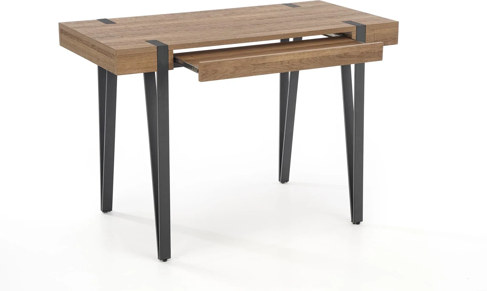 - Funkcjonalność i wygoda - Biurko zostało wyposażone w praktyczną wysuwaną półkę, która umożliwia wygodne przechowywanie klawiatury lub innych akcesoriów, co zwiększa komfort pracy i organizację przestrzeni roboczej.