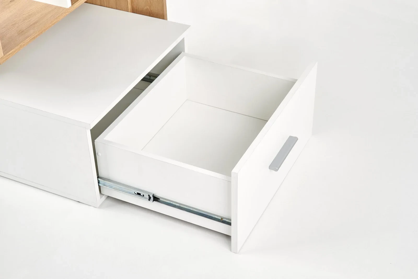 - Prowadnice szuflady: kulkowe z pełnym wysuwem