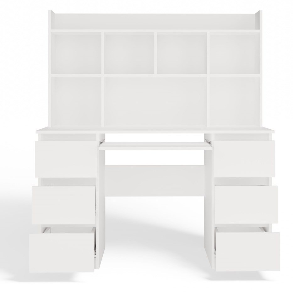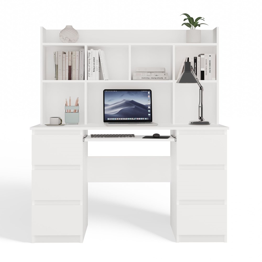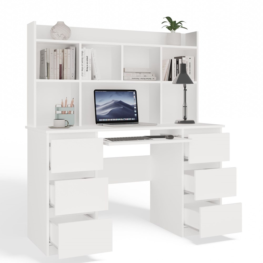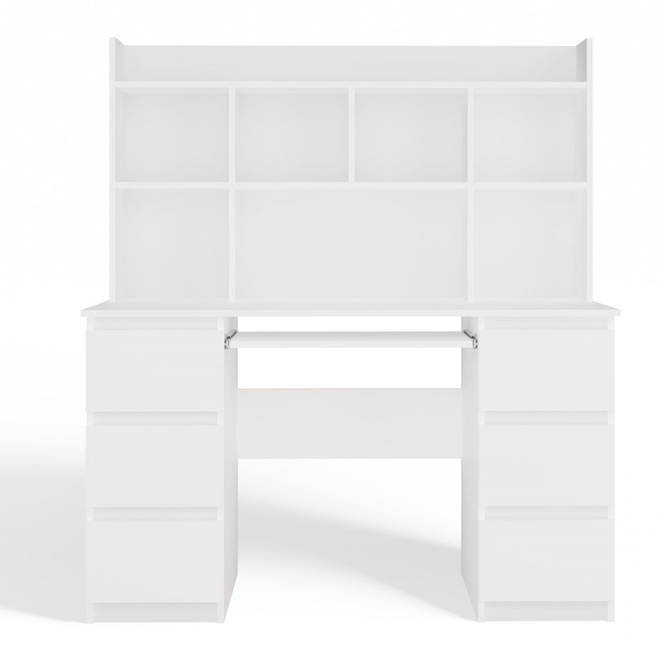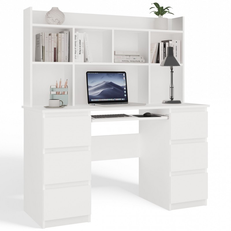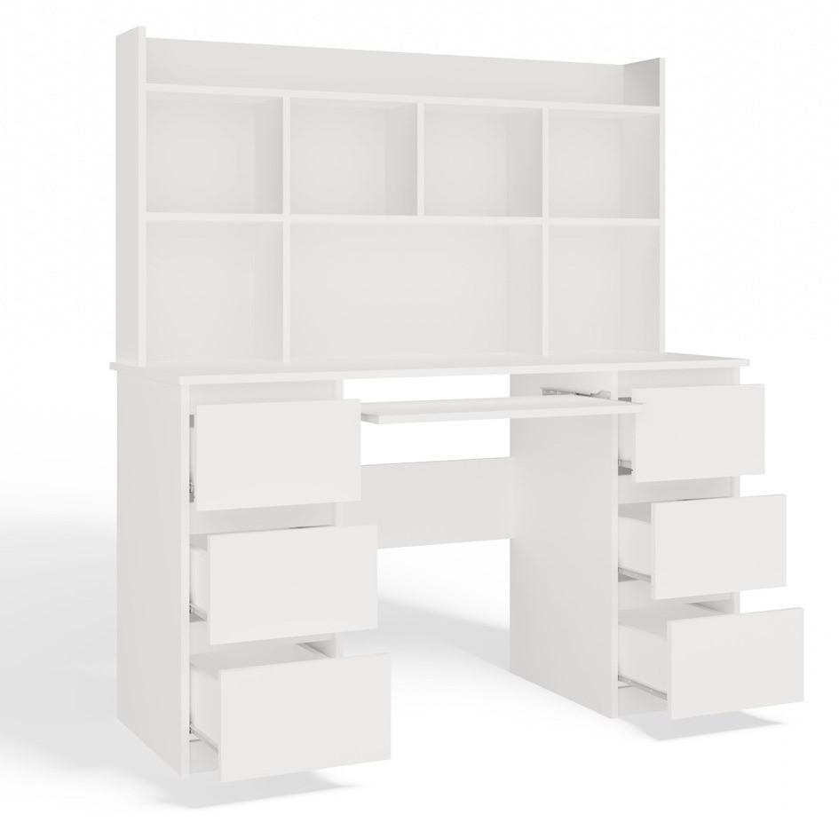 Biurko komputerowe Kuba z nadstawką nowoczesne z 6 szufladami 130 cm biały