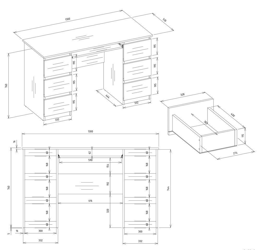 - Wysokość samego biurka: 76 cm