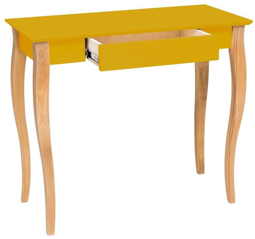 Biurko LILLO jest meblem idealnym dla tych, którzy cenią design oraz praktyczność elementów wyposażenia wnętrz. Doskonale wpasuje się zarówno w miejskim biurze, jak i zacisznym, domowym gabinecie. Biurko posiada dyskretną szufladę, która sprawia że mebel jest funkcjonalny i praktyczny. Blat pozwali Ci swobodnie wykonywać swoją pracę, a szuflada umożliwi zorganizowanie podręcznych akcesoriów. LILLO to biurko, które jest niewielkie i nie potrzebuje zbyt wiele miejsca. Swój urok zawdzięcza nóżkom wykonanym z litego drewna bukowego. Drewniana podstawa to element, który ociepli Twoje wnętrze. Szuflada biurka wyposażona jest w prowadnice kulkowe z pełnym wysuwem. Biurko zostało wykonane z płyty MDF lakierowanej w wielu modnych kolorach. Nasze meble wykonane są z najwyższą starannością i dbałością o każdy szczegół. Nie malujemy spodów oferowanych mebli, ponieważ skupiamy się na estetyce i jakości powierzchni użytkowych, które mają bezpośredni wpływ na komfort użytkowania.