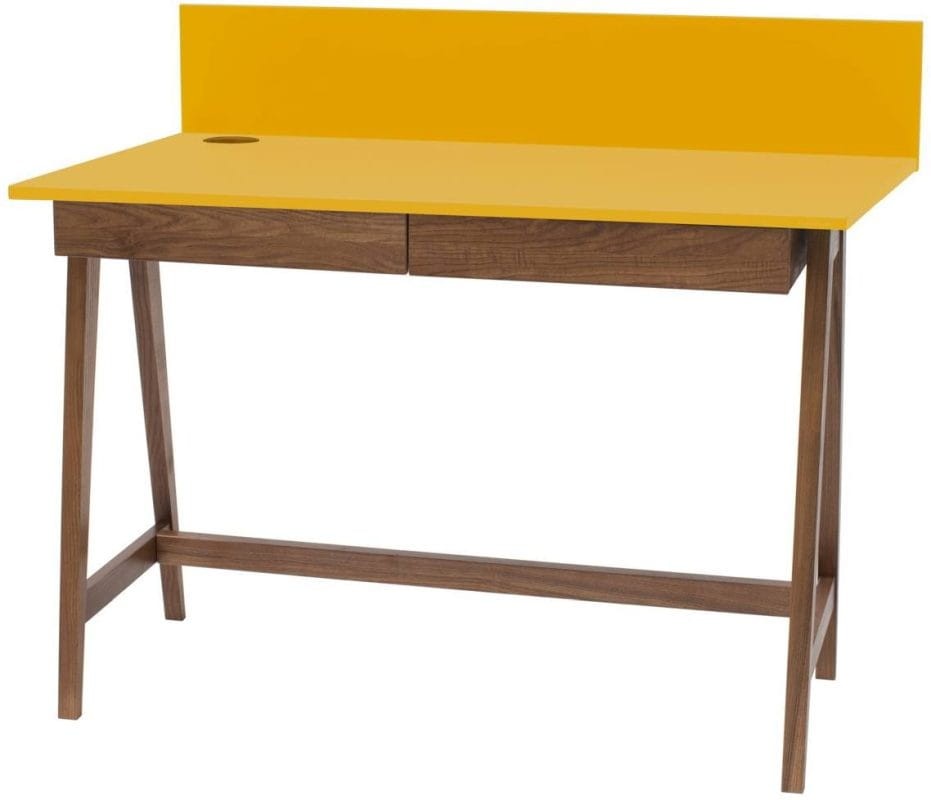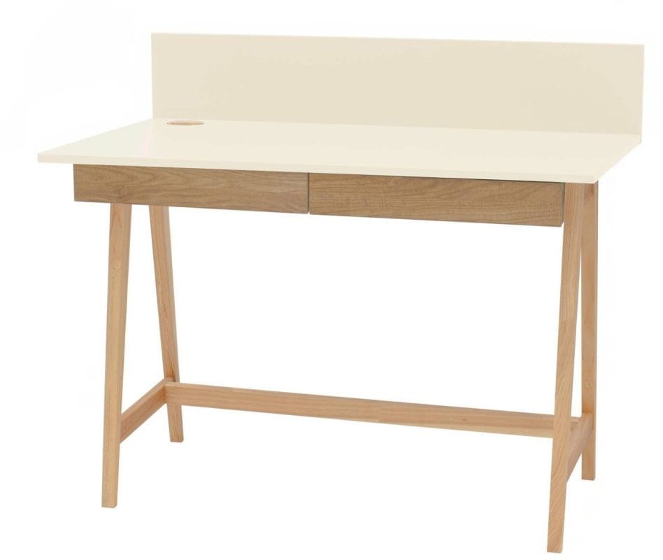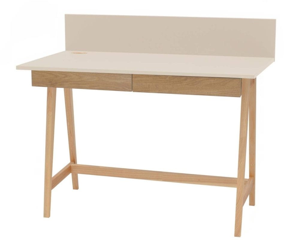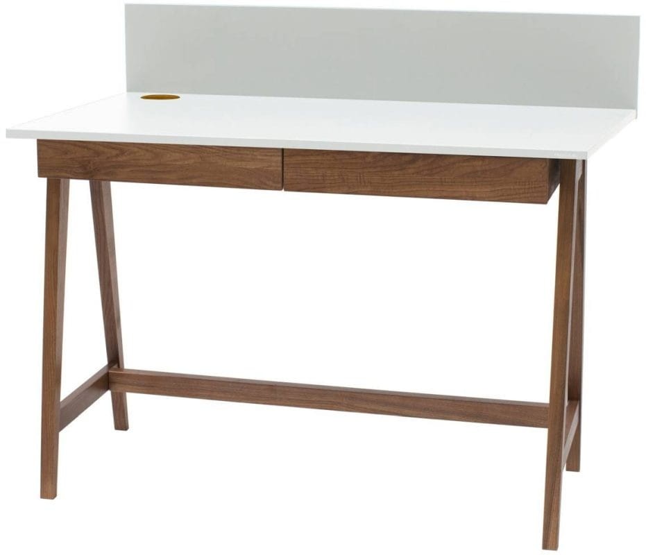 Przepiękne biurko LUKA posiada naprawdę wyjątkową formę, która zyskała uznanie naszych klientów w Polsce, jak również za granicą. Mebel jest nowoczesną propozycją biurka z drewnianymi nóżkami, pełną minimalistycznego wdzięku, w której kolor spotyka się z ponadczasową formą. Na uwagę przede wszystkim zasługuje funkcjonalny obszar blatu oraz praktyczne szuflady, które wspólnie zapewniają mnóstwo przestrzeni i komfortu pracy. Posiada dodatkowy tylny panel, który może posłużyć jako miejsce na notatki oraz funkcjonalny otwór na kable umieszczony w narożniku biurka. Biurko świetnie wpisuje się w wystrój domowego miejsca pracy, jak i w aranżacje przestrzeni biurowych, w których również mile widziana jest estetyka. Pozwoli stworzyć klimatyczną przestrzeń biurową zarówno w salonie jak i niewielkim wnętrzu.