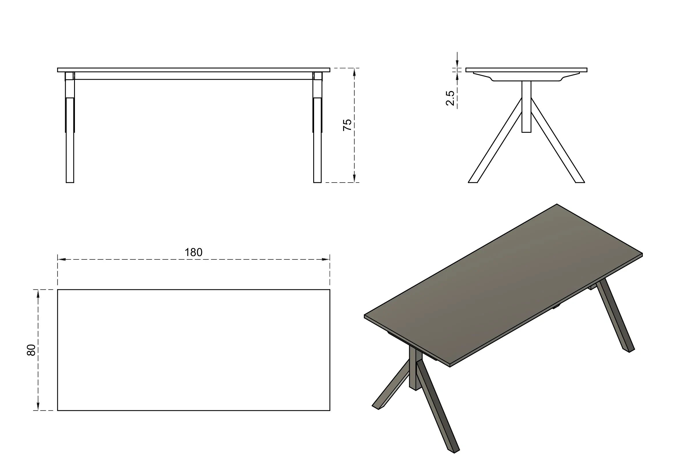 - Blat wykonany z płyty MFC (dwustronnie melaminowanej) o grubości 25 mm w kolorze orzech