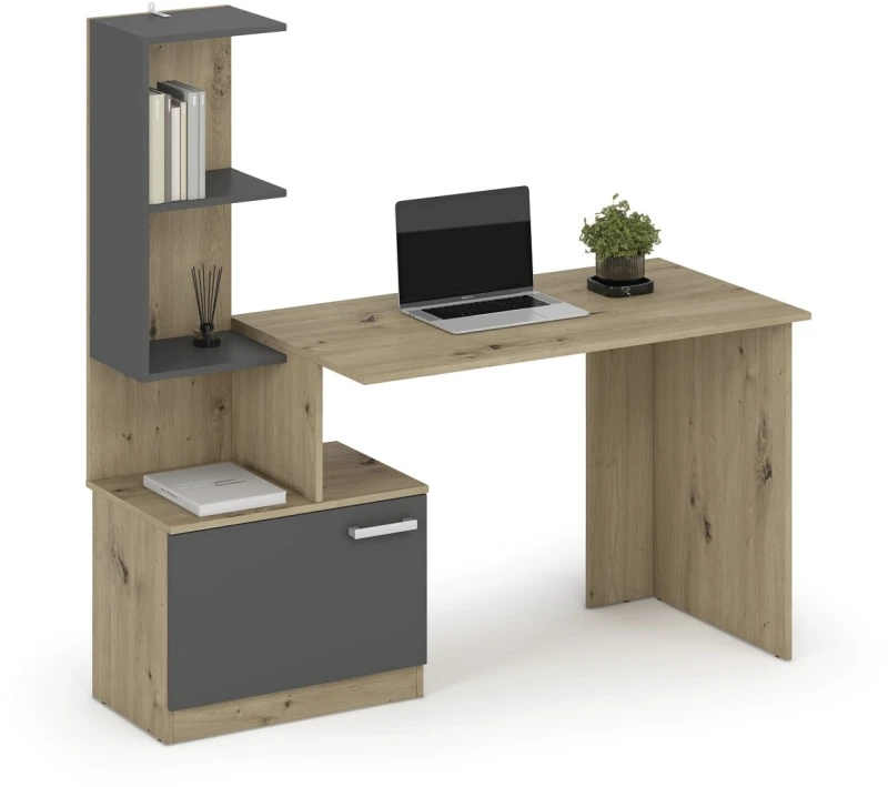 Biurko Miso z regałem i szafką do pokoju młodzieżowego 144 cm grafitowy/dąb artisan