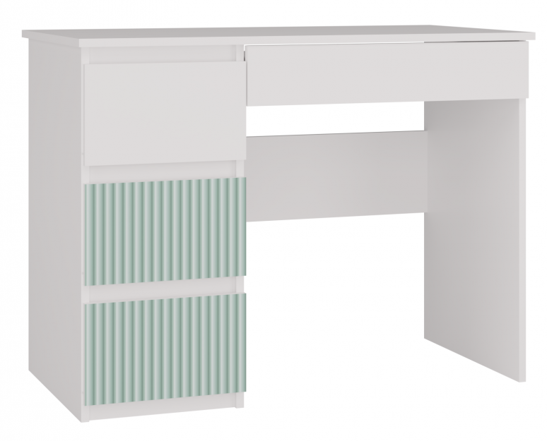 Biurko młodzieżowe Mijas Arteso Lewe kompaktowe z szufladami 98 cm biały/miętowy