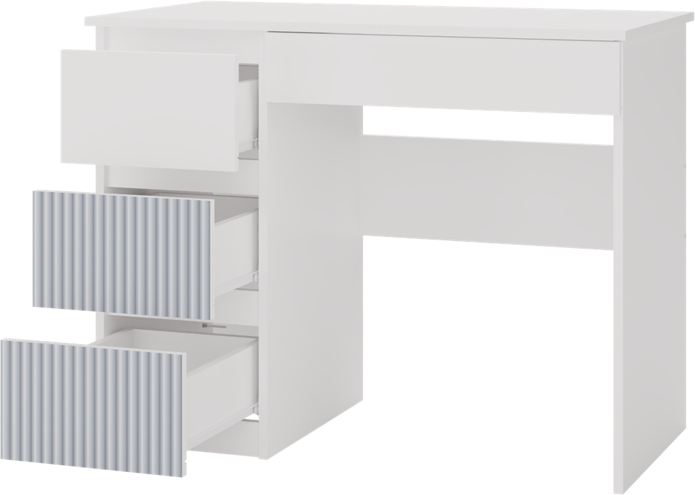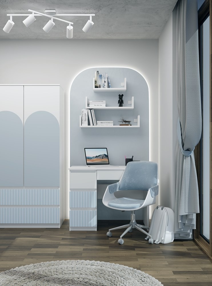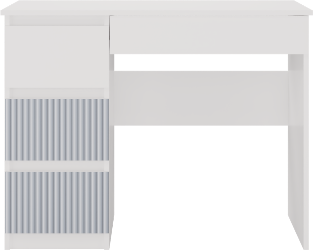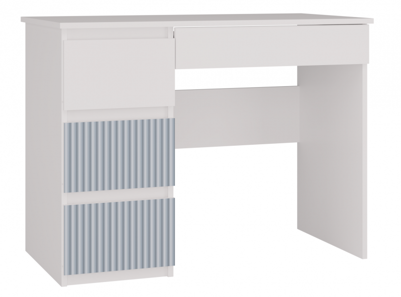 Biurko MIJAS ARTESO (wariant lewy w kolorystyce biały/niebieski) to harmonijne połączenie nowoczesnego designu i funkcjonalności, stworzone z myślą o dzieciach i młodzieży. Laminowana płyta o grubości 16 mm w wyraźnym, matowym wykończeniu gwarantuje odporność na codzienną eksploatację. Cztery praktyczne szuflady pozwalają na utrzymanie porządku w przyborach szkolnych, a bezuchwytowe fronty z dekoracyjnym, niebieskim akcentem tworzą estetyczne i przyjemne środowisko do nauki.