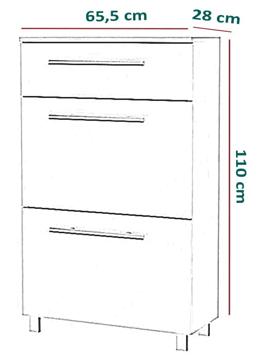 Briwa to funkcjonalna szafka na obuwie z szufladą na pełen wysuw. Wyposażona została w dwa metalowe, dwurzędowe kosze na buty, które pomieszczą 12 par butów. Szafka na buty dostępna jest w wielu wariantach kolorystycznych, co pozwala na dopasowanie jej do indywidualnych preferencji i wystroju wnętrza. Wykonana została z wysokiej jakości materiałów - metalowe uchwyty, podnośniki gazowe oraz pogrubiona płyta laminowana, gwarantują długoletnie użytkowanie mebla.