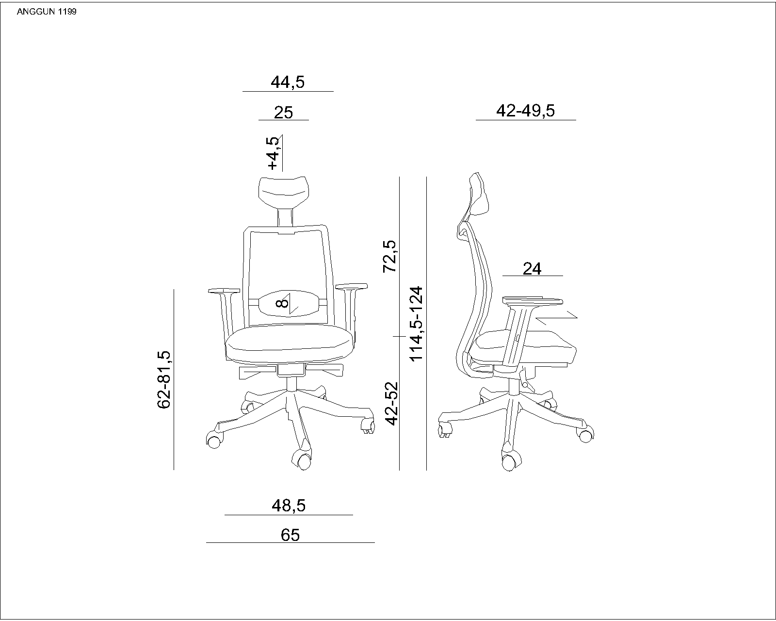 - Regulacja wysokości oparcia dla kręgów lędźwiowych (8 cm)
