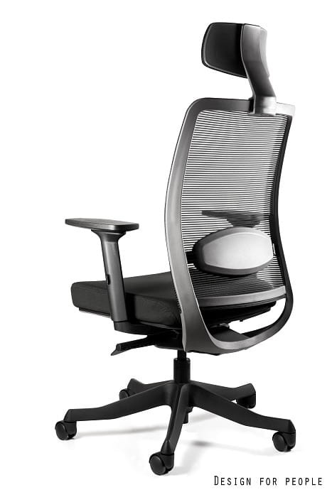 - Oparcie i zagłówek tapicerowane siatką, konstrukcja w kolorze charcoal