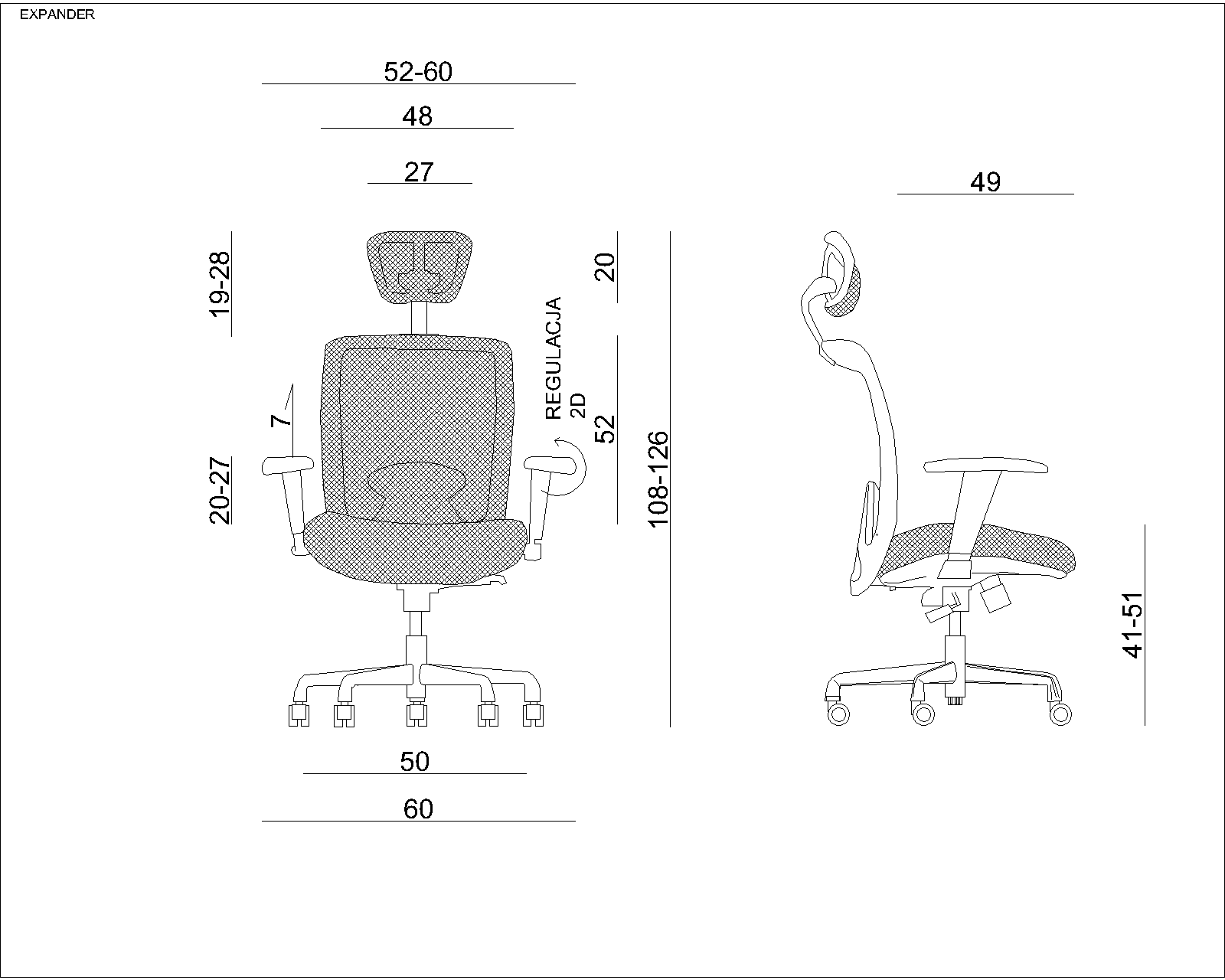 - Podłokietniki posiadają regulację szerokości i wysokości