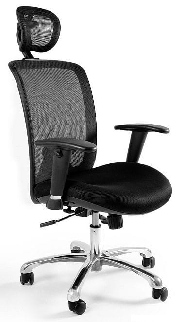 - Oparcie, zagłówek tapicerowane siatką, siedzisko membraną