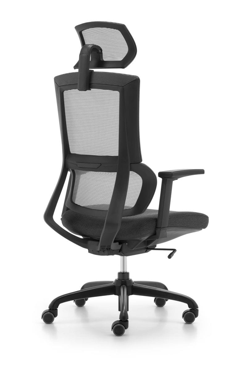 - Siedzisko tapicerka: tkanina czarna, tapicerka zagłówka i oparcia siatkowana czarna