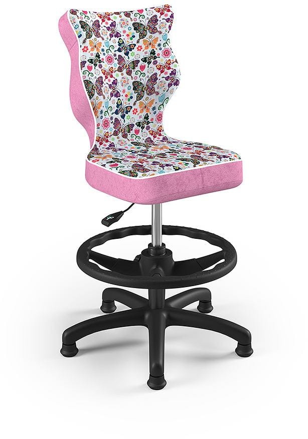 Fotel biurowy, dziecięcy Petit Storia to młodzieżowa propozycja fotela tak do pokoju dziecięcego jak i pracowni szkolnych, wyposażona we wzorzystą tapicerkę odpowiednią dla młodszych dzieci oraz obrotową podstawę. Komfortowe i ergonomiczne siedzisko tapicerowane jest wytrzymałą tkaniną i dzięki gazowemu podnośnikowi pozwala płynnie ustawić odpowiednią dla dziecka pozycję przed biurkiem. Profilowane oparcie jest miękkie, ale jednocześnie wymusza odpowiednią pozycję pleców, dzięki czemu pozwala zmniejszyć ryzyko powstawania wad postawy. Podstawa stojąca wykonana z wzmocnionego włóknem szklanym tworzywa posiada wytrzymałe stopki z tworzywa sztucznego zapewniające stabilność na każdej powierzchni. Fotel wyposażony jest w podnóżek z regulowaną wysokością, który wspomoże dziecko w zachowaniu wygody podczas użytkowania.