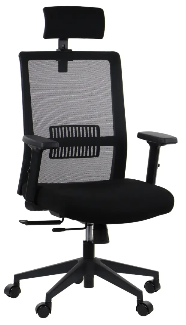 - Oparcie z regulowanym wyprofilowaniem lędźwiowym - gwarantuje wygodę siedzenia podczas wielogodzinnej pracy