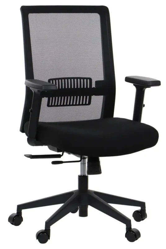 - Oparcie z regulowanym wyprofilowaniem lędźwiowym - gwarantuje wygodę siedzenia podczas wielogodzinnej pracy