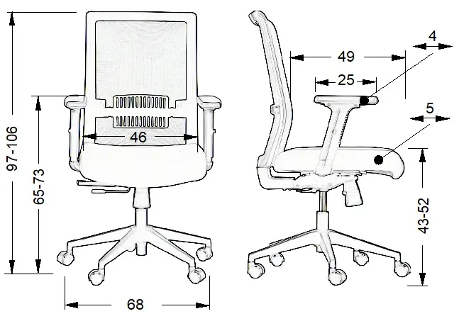- Wysokość podłokietnika: 19 - 28 cm