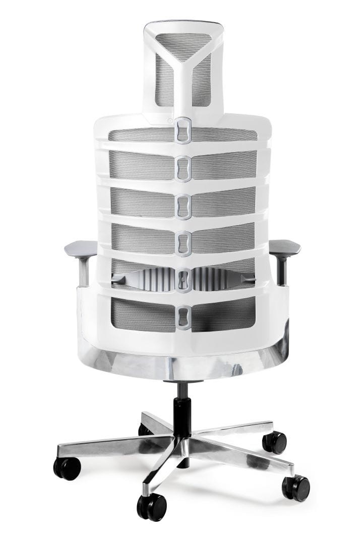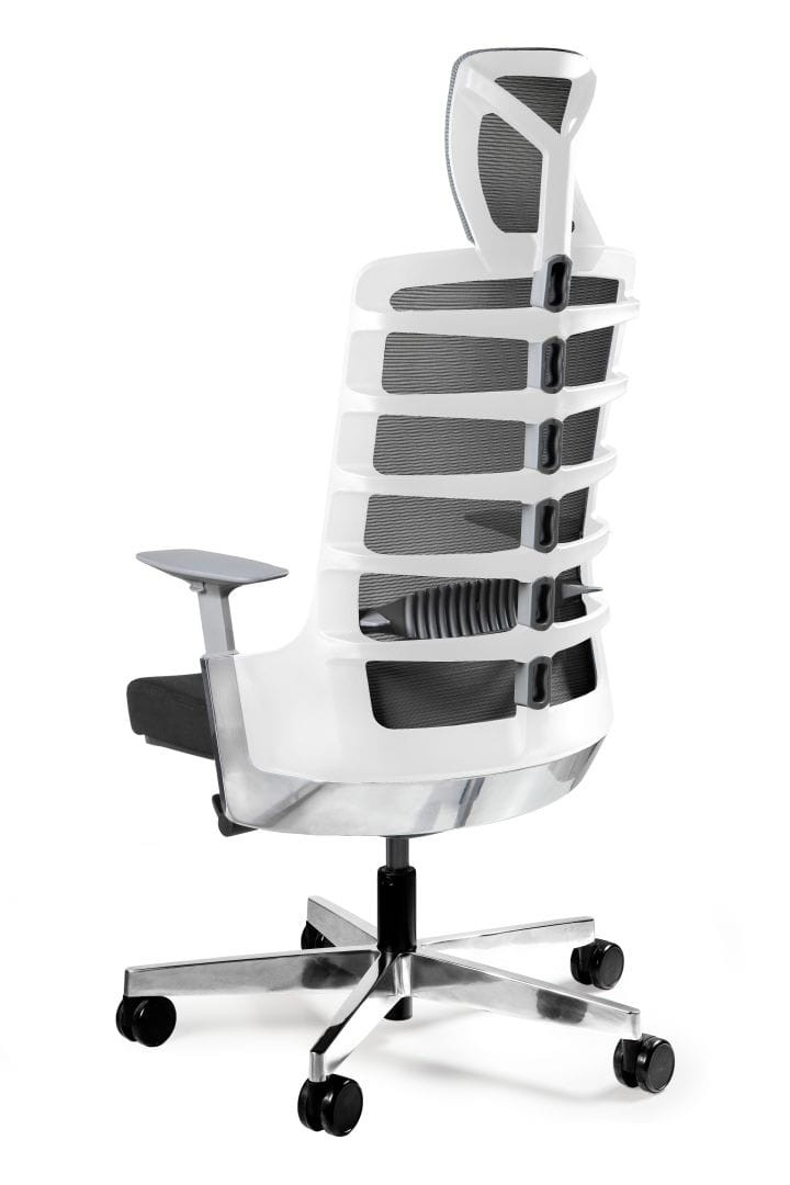 - Zagłówek i oparcie tapicerowane siatką