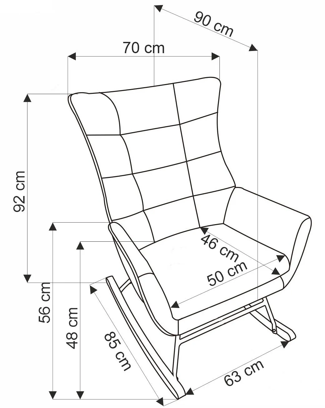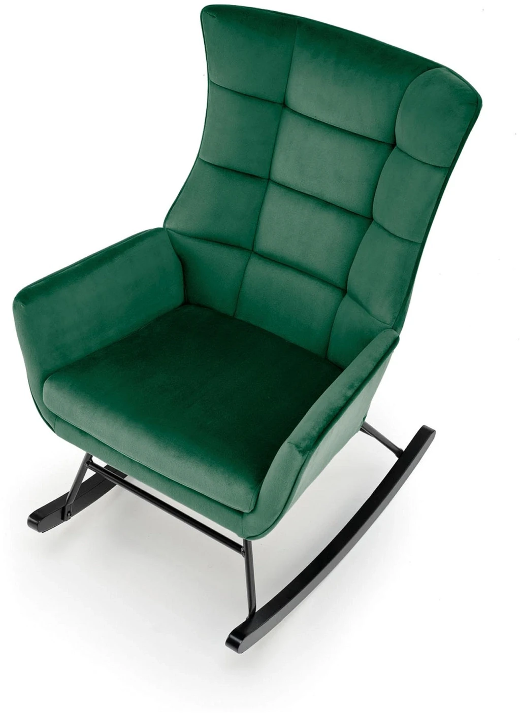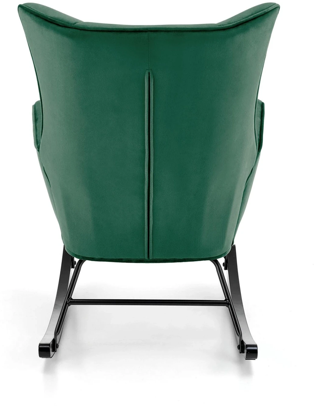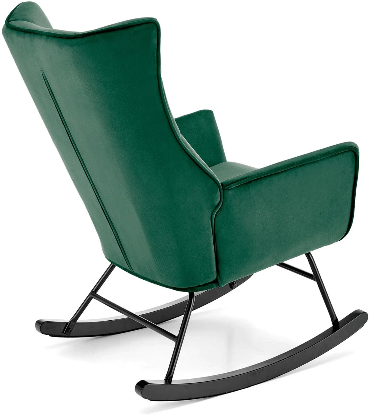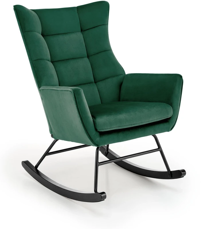 Fotel bujany BAZALTO to doskonała propozycja dla wszystkich, którzy pragną połączyć komfort wypoczynku z eleganckim wyglądem mebla. Wysokie oparcie z charakterystycznym wyprofilowaniem typu „uszak” oraz miękkie podłokietniki zapewniają wygodę na najwyższym poziomie, idealną zarówno do relaksu, jak i codziennego odpoczynku. Tapicerka z aksamitnej tkaniny velvet w modnym, ciemnozielonym odcieniu HLR 57 dodaje wnętrzu głębi i charakteru, a jednocześnie jest wyjątkowo przyjemna w dotyku. Stabilna konstrukcja z malowanego proszkowo metalu w połączeniu z drewnianymi płozami gwarantuje nie tylko trwałość, ale i płynny, kojący ruch bujania. Fotel BAZALTO to stylowy i funkcjonalny dodatek do salonu, sypialni czy domowej biblioteczki – stanie się nie tylko meblem, ale i ulubionym miejscem odpoczynku.