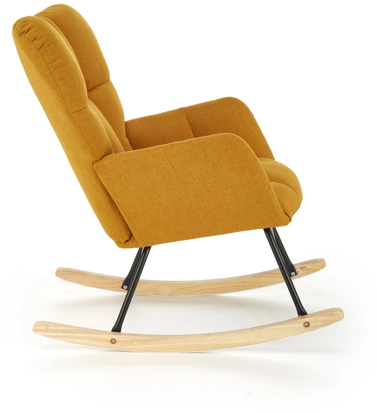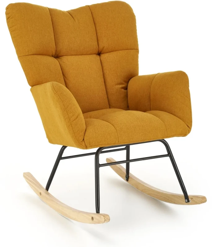 Fotel bujany VASCO w energetycznym odcieniu musztardowym to idealna propozycja dla osób ceniących komfort i wyjątkowy styl. Jego ergonomiczna forma oraz głębokie, miękkie siedzisko pozwalają na pełne odprężenie po dniu pełnym wyzwań. Dzięki łagodnemu mechanizmowi bujania wprowadza atmosferę spokoju do każdego wnętrza – idealnie sprawdzi się w salonie, sypialni, pokoju do czytania czy nawet w pokoju dziecięcym jako niezastąpiony towarzysz wieczornych rytuałów. Nowoczesna konstrukcja stalowa malowana proszkowo gwarantuje stabilność, a naturalne płozy z litego drewna zapewniają przyjemny ruch bujania. Dodatkowym atutem jest wysokiej jakości tapicerka z tkaniny NEA w kolorze musztardowym – miękka, wytrzymała i przyjemna w dotyku. VASCO to nie tylko mebel, ale prawdziwa oaza wypoczynku, która stanie się ozdobą Twojego domu.