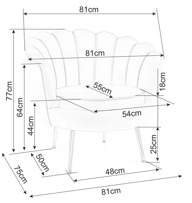 Wymiary fotela Camellia 1 Velvet: