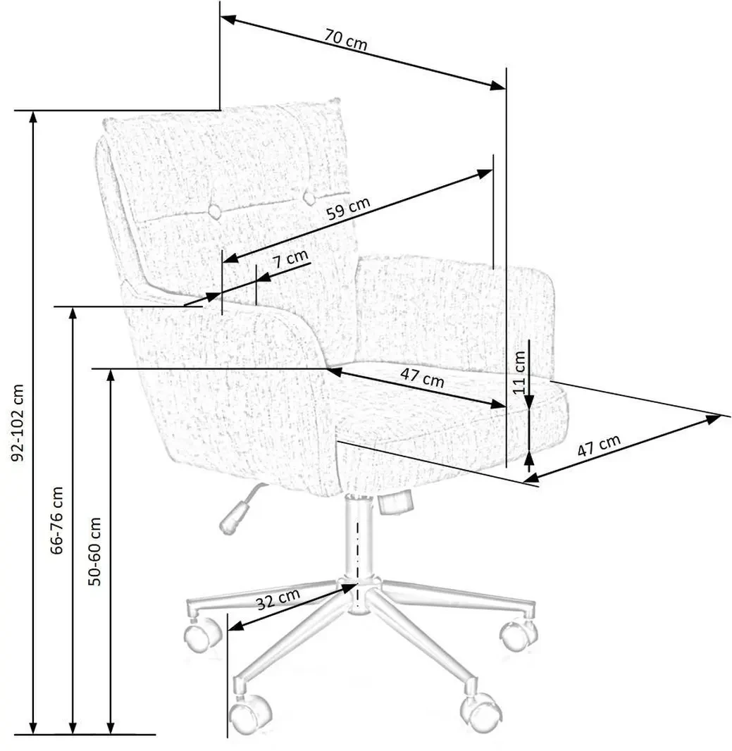 Dzięki zastosowaniu mechanizmu TILT fotel zapewnia wygodne dopasowanie do pozycji użytkownika, a stabilna, metalowa podstawa z kółkami kauczukowymi ułatwia swobodne przemieszczanie się po powierzchni.