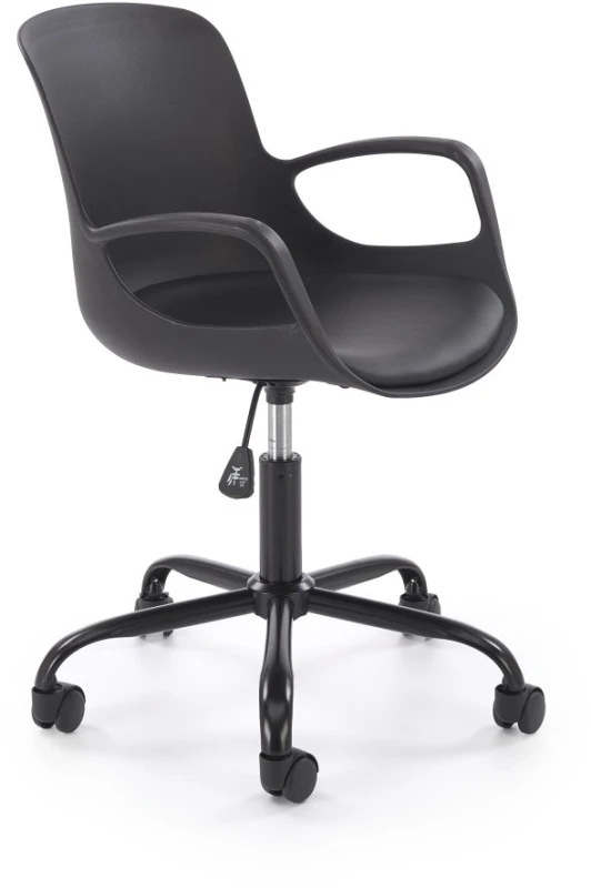 Fotel młodzieżowy FROST w kolorze czarnym to nowoczesne rozwiązanie dla osób, które cenią sobie komfort, funkcjonalność i minimalistyczny design. Jego stylowy wygląd doskonale komponuje się zarówno z młodzieżowym pokojem, jak i przestrzenią biurową czy pracownią. Głębokie siedzisko z miękką poduszką pokrytą łatwą w pielęgnacji ekoskórą gwarantuje wygodę podczas nauki, pracy czy rozrywki. Cała konstrukcja została wykonana z wytrzymałego polipropylenu, który zapewnia stabilność i trwałość przez długie lata. Zintegrowane podłokietniki i ergonomiczny profil oparcia wspierają prawidłową postawę ciała. Fotel wyposażony jest w podstawowy mechanizm regulacji wysokości oraz stabilną, obrotową podstawę na kółkach, co umożliwia swobodne poruszanie się i dopasowanie do biurka. Czerń dodaje elegancji i pasuje do każdego wystroju – od nowoczesnego po klasyczny.