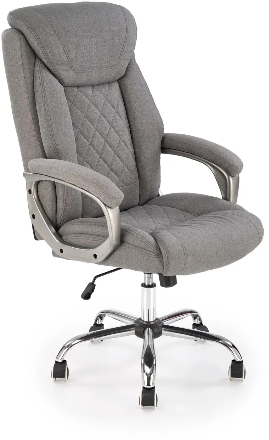 Fotel gabinetowy HELDER 2 w kolorze popielatym to połączenie klasycznego stylu z nowoczesnymi rozwiązaniami ergonomicznymi, które zapewnią Ci maksymalny komfort nawet podczas wielogodzinnej pracy. Miękka, tapicerowana tkaniną konstrukcja siedziska i oparcia została uzupełniona o efektowne przeszycia w formie pikowania w romby, które podkreślają jego elegancki charakter. Szerokie podłokietniki oraz zagłówek stanowią dodatkowe wsparcie dla kręgosłupa i karku, ułatwiając zachowanie prawidłowej postawy. Zastosowany w fotelu mechanizm TILT umożliwia swobodne bujanie oraz blokadę oparcia w pozycji pionowej, co znacząco wpływa na wygodę użytkowania. Stabilna, chromowana podstawa z pięcioma kółkami zapewnia mobilność i trwałość konstrukcji, a regulacja wysokości pozwala dopasować fotel do indywidualnych potrzeb. HELDER 2 to idealny wybór dla osób ceniących komfort, estetykę i wysoką jakość wykonania w swoim miejscu pracy.