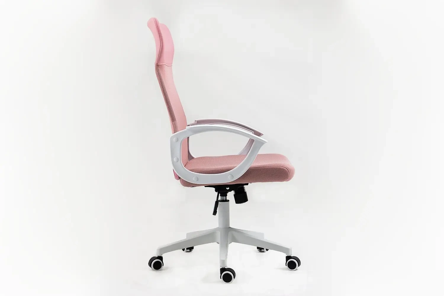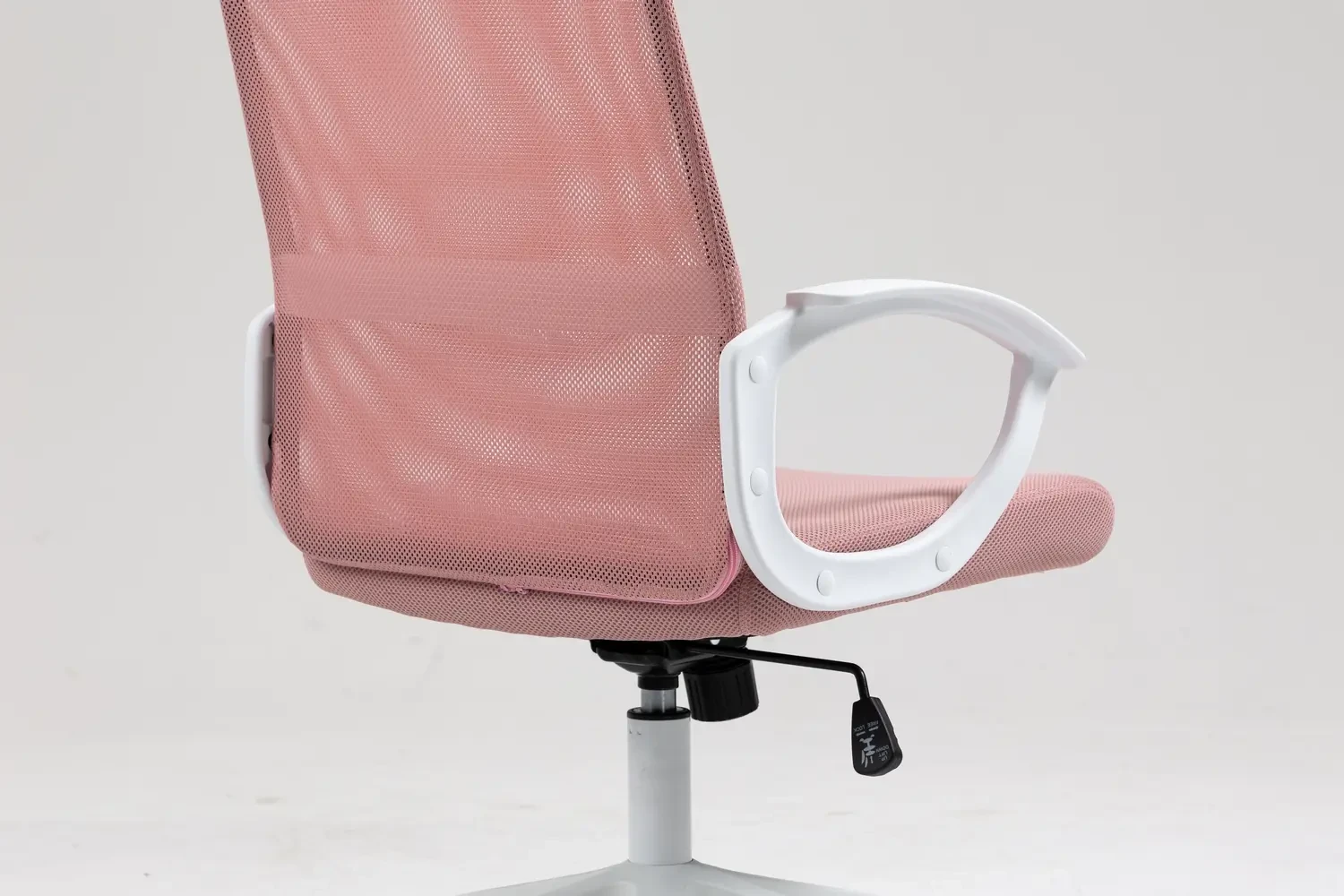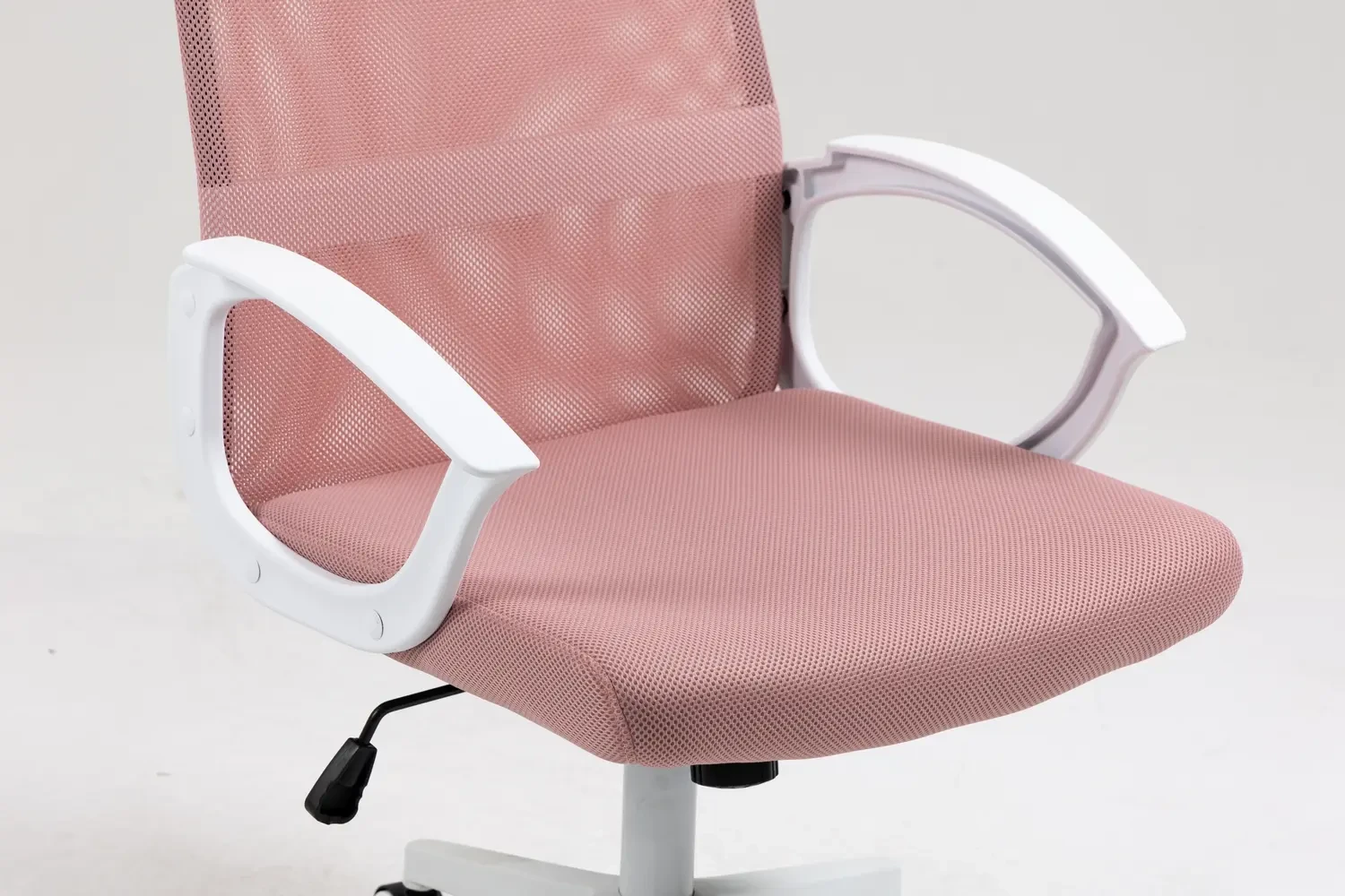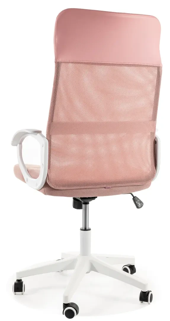 Fotel obrotowy Q-026 to nowoczesne siedzisko zaprojektowane z myślą o komforcie i funkcjonalności użytkownika. Obicie fotela wykonane jest z kombinacji materiałów: tkaniny membranowej, siatki oraz skóry syntetycznej, w pięknym, różowym kolorze, który łatwo wpasuje się w różne aranżacje wnętrz. Stelaż fotela, w kolorze białym, został wykonany z trwałego tworzywa, zapewniając stabilność i długotrwałe użytkowanie. Fotel wyposażono w mechanizm TILT, umożliwiający regulację oparcia dla większej wygody, oraz stałe podłokietniki, które wspierają prawidłową postawę podczas siedzenia. To eleganckie i praktyczne rozwiązanie do każdego biura czy domowego miejsca pracy.