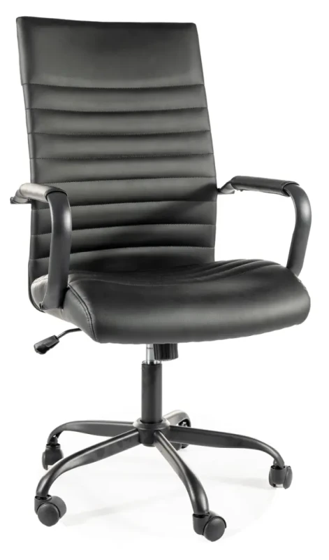 Fotel obrotowy Q-306 to elegancki i funkcjonalny mebel, który idealnie wpasuje się w przestrzeń biurową oraz domowe zacisze. Wykonany z wysokiej jakości skóry syntetycznej w czarnym odcieniu, oferuje nie tylko estetykę, ale również komfort użytkowania. Wyposażony w mechanizm TILT, umożliwia łatwe dopasowanie położenia siedziska do indywidualnych preferencji, co zwiększa ergonomię pracy czy odpoczynku. Fotel posiada również stałe podłokietniki, które zapewniają dodatkowe wsparcie dla ramion i przyczyniają się do prawidłowej postawy podczas siedzenia.