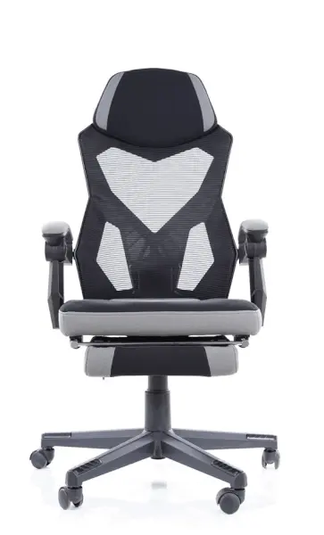 Fotel obrotowy Q-939 to praktyczny mebel do biura, gabinetu lub pokoju młodzieżowego. Duże i wygodne siedzisko wykonane zostało z wytrzymałej, przewiewnej tkaniny membranowej. Na oparcie zastosowano siatkę, która zapobiega poceniu się podczas użytkowania. Całość konstrukcji została wybarwiona w czarno-szarych kolorach. Odpowiednio wyprofilowane podłokietniki fotela zapewnią komfortowe ułożenie ramion w trakcie siedzenia. Podstawa jezdna Fotela obrotowego Q-939 została wyposażona w solidne kółka. Zastosowany mechanizm TILT pozwala płynnie regulować wysokość siedziska oraz załączać tryb bujania się. Dodatkowym atutem fotela jest wysuwany podnóżek, który umożliwi wyprostowanie nóg w chwili relaksu. Każdy szczegół Fotela obrotowego Q-939 został wykonany z dużą starannością.