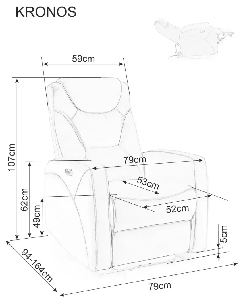 - Możliwość elektrycznego rozkładania - fotel można użytkować w pozycji siedzącej, jak również przejść do pozycji leżącej