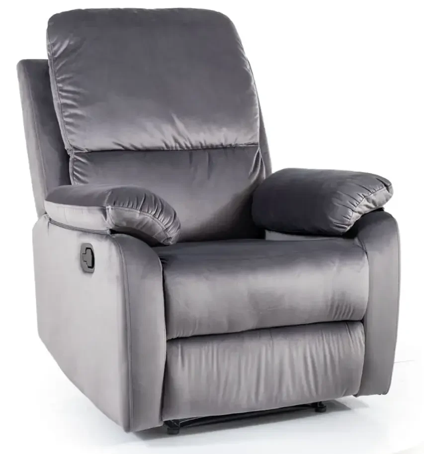 Fotel Spencer 1 Velvet to elegancka i estetyczna propozycja rozkładanego fotela, idealnie wpisującego się zarówno w nowoczesne, jak i bardziej tradycyjne wnętrza. Wykonany jest wyłącznie z najwyższej jakości materiałów, a cała konstrukcja siedziska została tapicerowana trwałą oraz niezwykle miłą w dotyku tkaniną aksamitną Bluvel 14 o klasycznym, szarym kolorze. Fotel Spencer 1 charakteryzuje się praktycznym rozkładaniem siedziska, oferując wysuwany podnóżek oraz odchylane oparcie. To funkcjonalne rozwiązanie sprawia, że fotel doskonale dostosowuje się do różnych potrzeb użytkowników. Każdy detal mebla został starannie dopracowany, co przekłada się na zarówno wysoki komfort użytkowania, jak i atrakcyjny wygląd, pasujący do wielu aranżacji wnętrz.