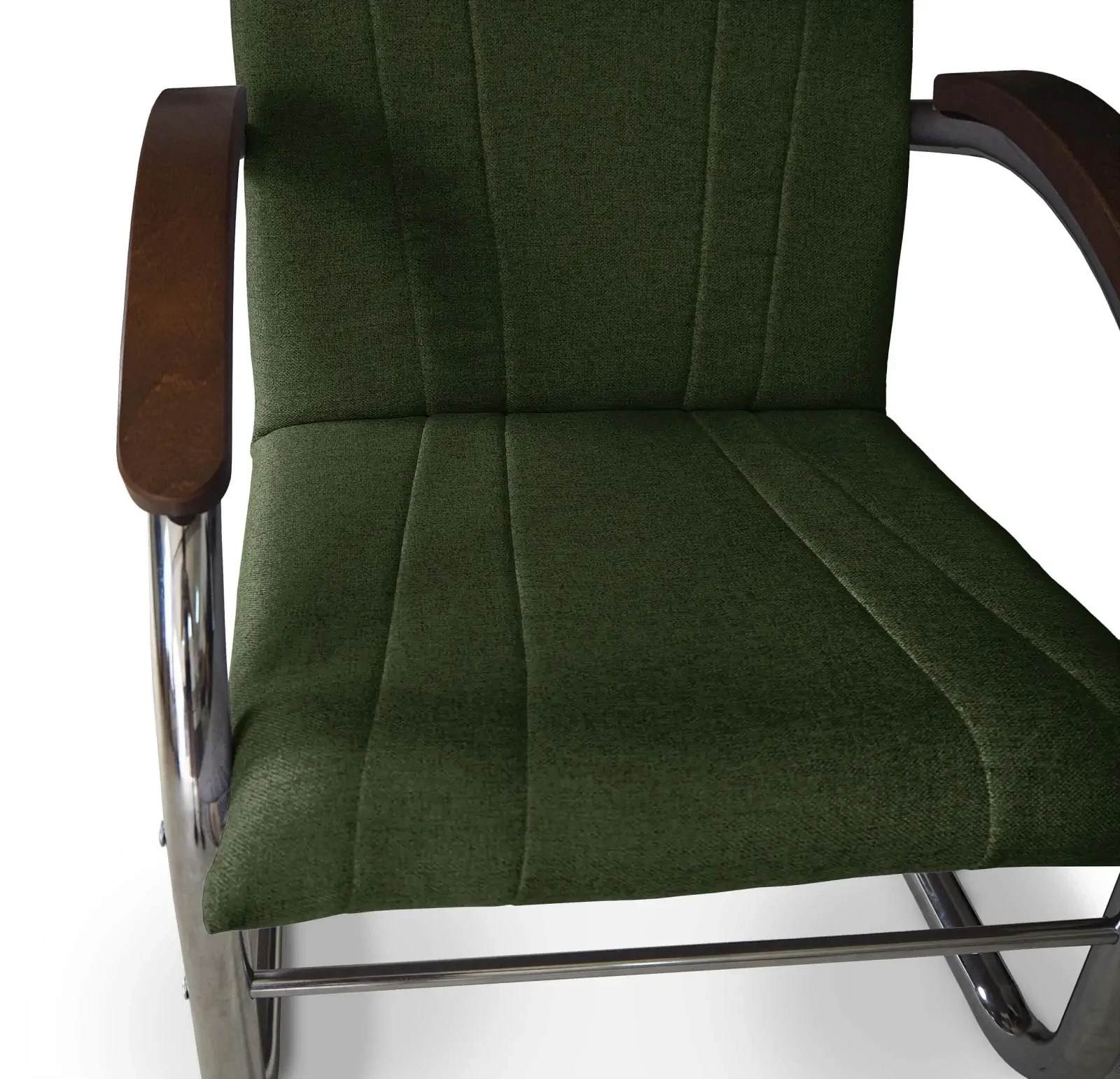 Drewniane podłokietniki w ciepłym odcieniu brązu dodają meblowi przytulności, doskonale kontrastując z chłodnym blaskiem metalowej konstrukcji. Fotel jest wyposażony w wysokoelastyczną piankę, co zapewnia wyjątkowy komfort siedzenia, nawet przez dłuższy czas. Dzięki przemyślanej konstrukcji, fotel Finka Happy jest nie tylko wygodny, ale również łatwy do przenoszenia i dopasowania do różnych przestrzeni w Twoim domu. Fotel tapicerowany Finka Happy zaprojektowany i wykonany został w Polsce co jest gwarancją jakości - Wspieraj